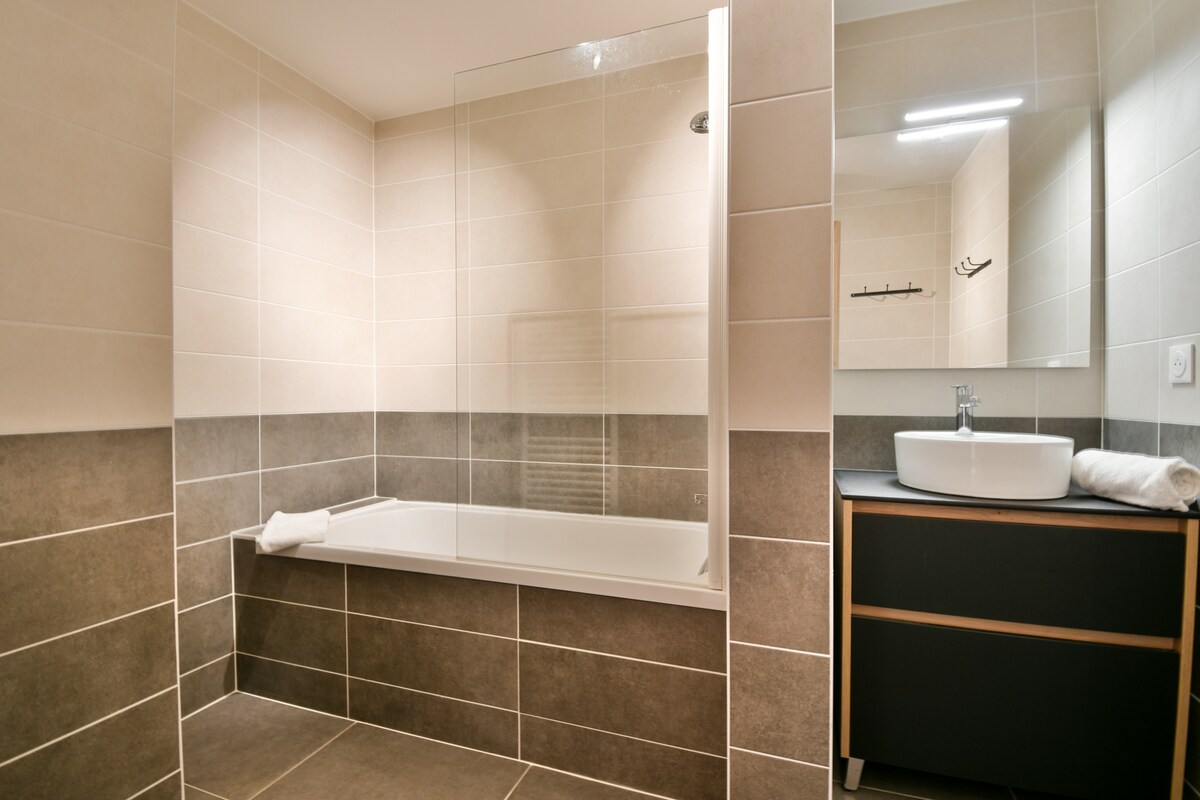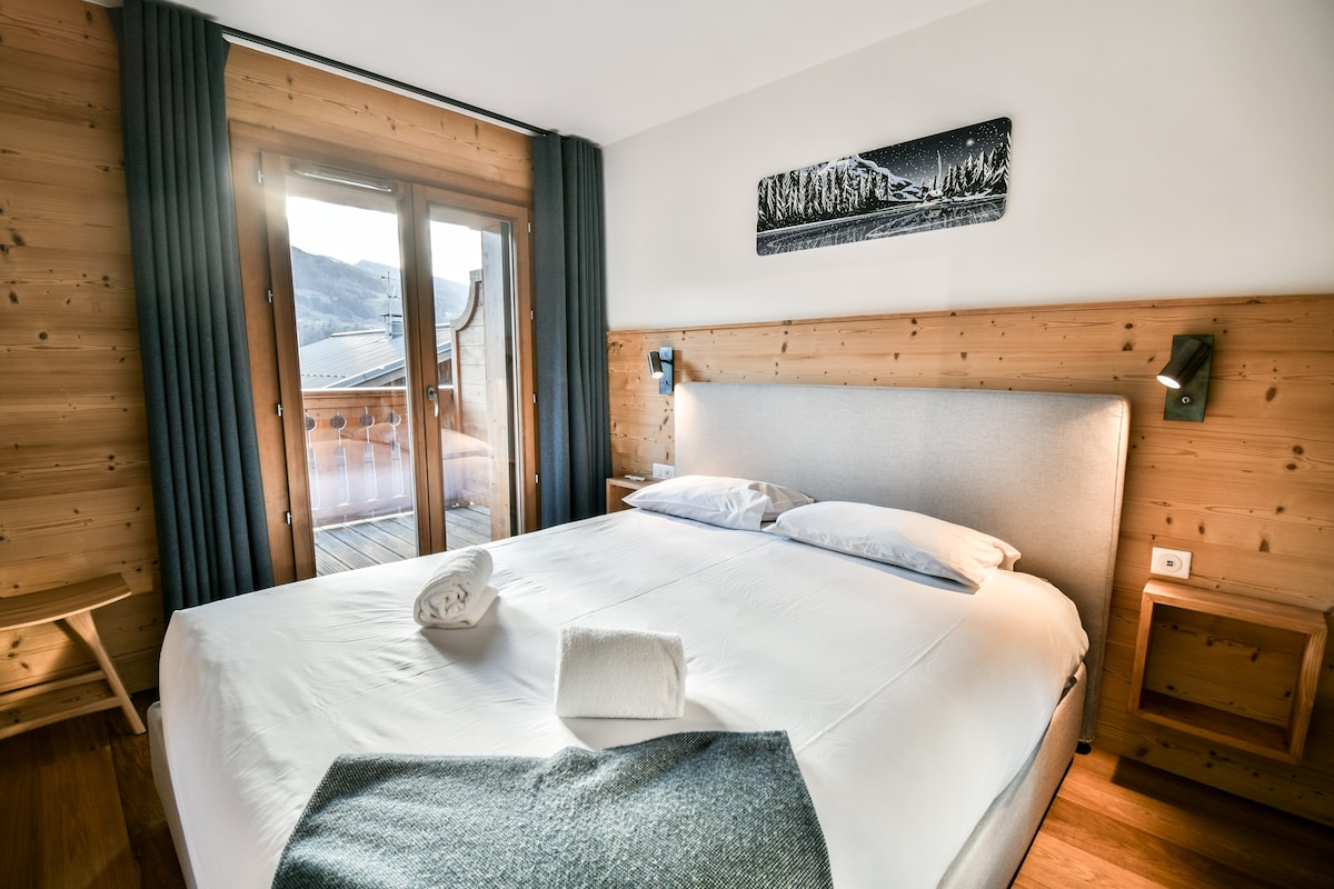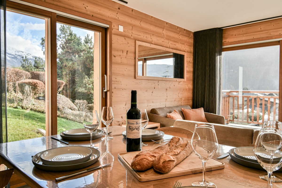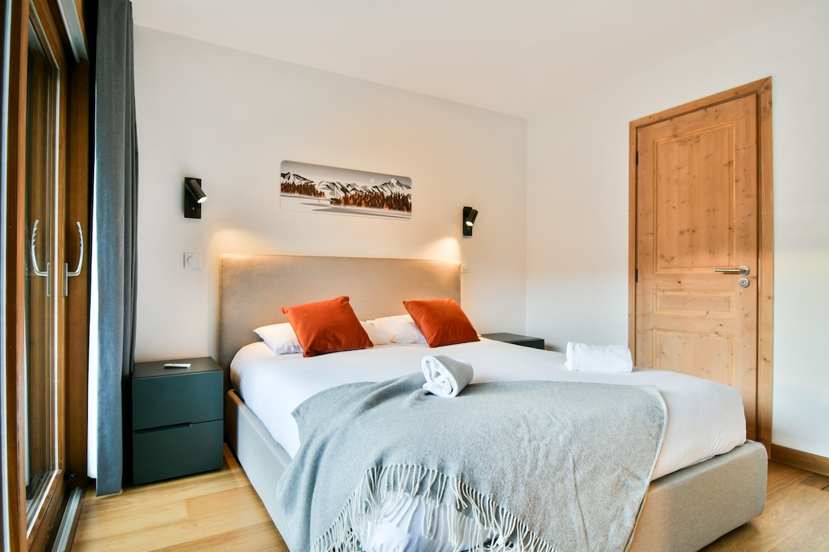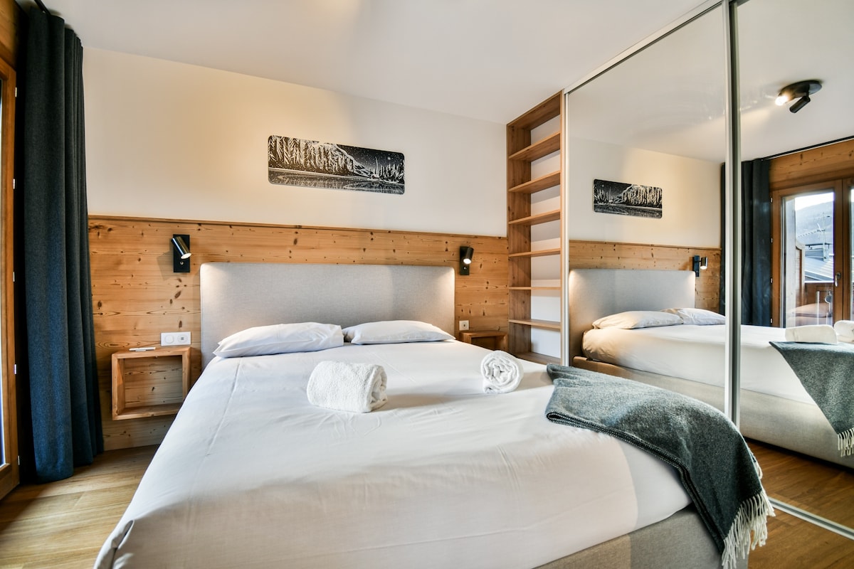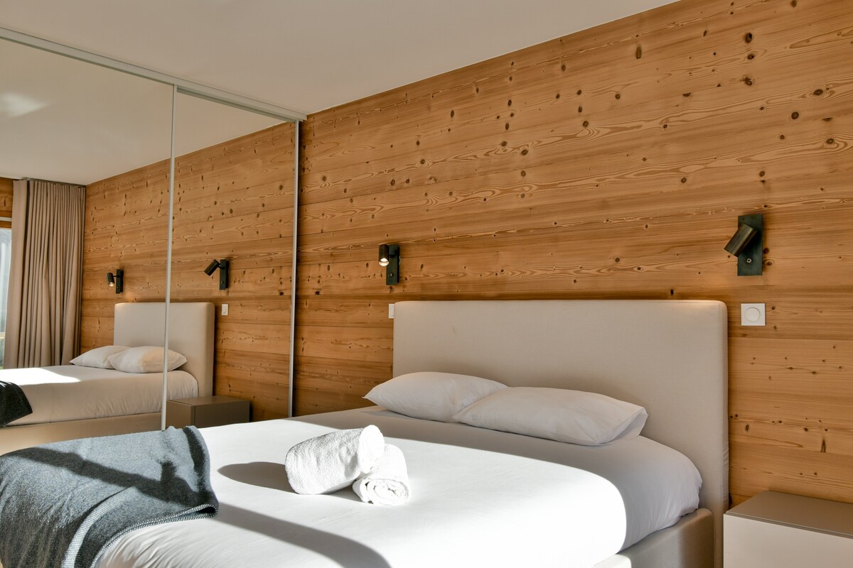 The village center and a shuttle bus stop are just a few steps away, providing easy access to the ski lifts and leisure activities (approximately 1.5 km).