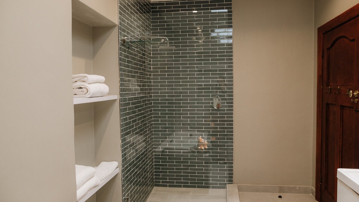You have four spacious bedrooms designed with comfort in mind. Each one provides a restful retreat after a day of exploring the Cape Winelands, with high ceilings and original wooden floors adding a sense of character throughout the home. Four well-appointed bathrooms ensure everyone has their own space and privacy.