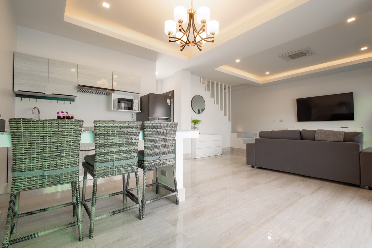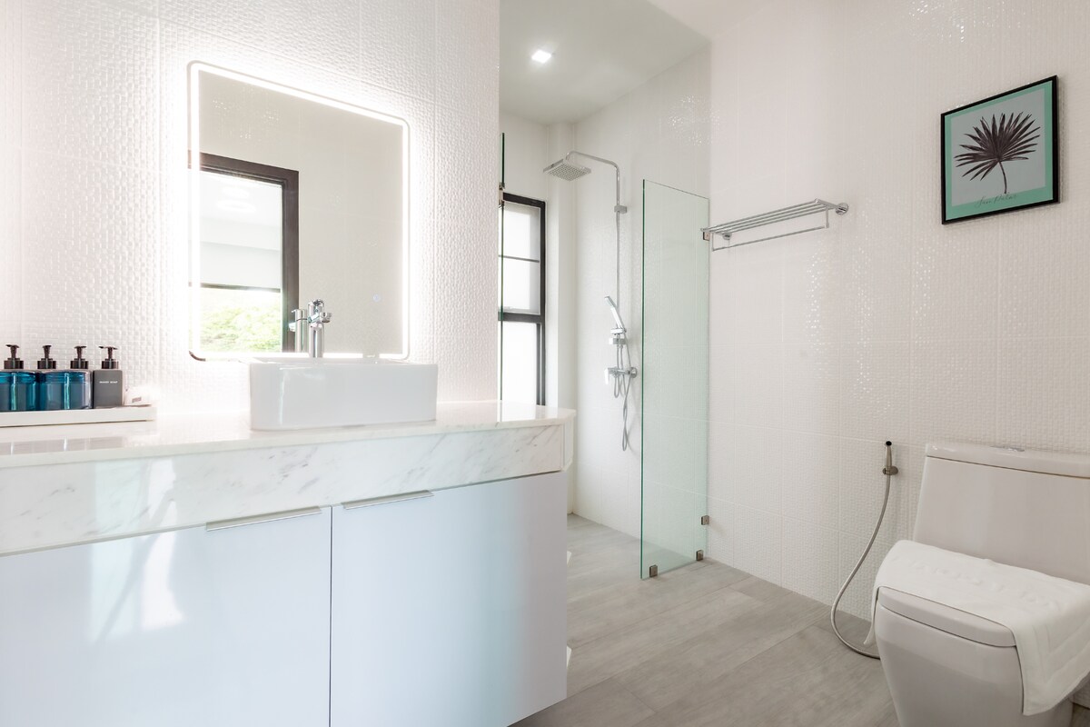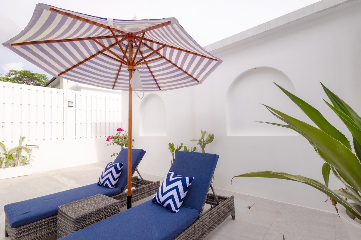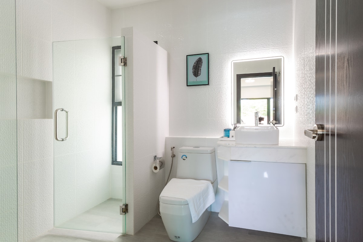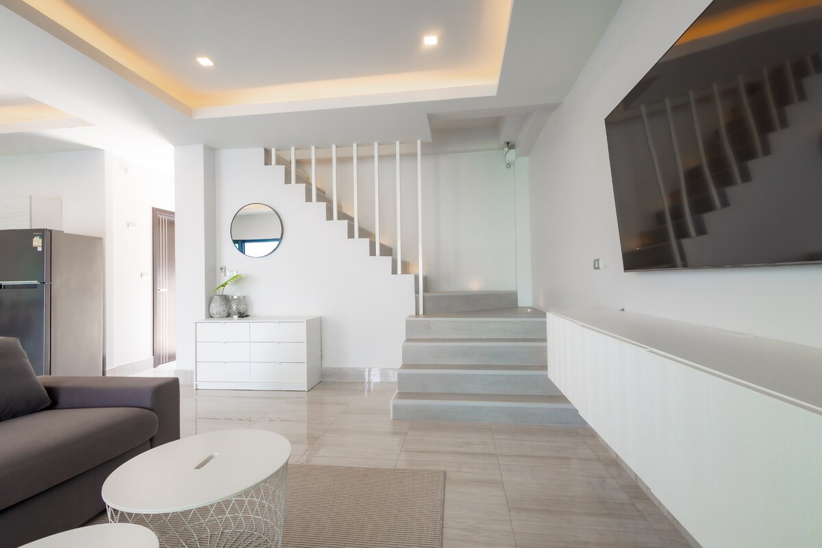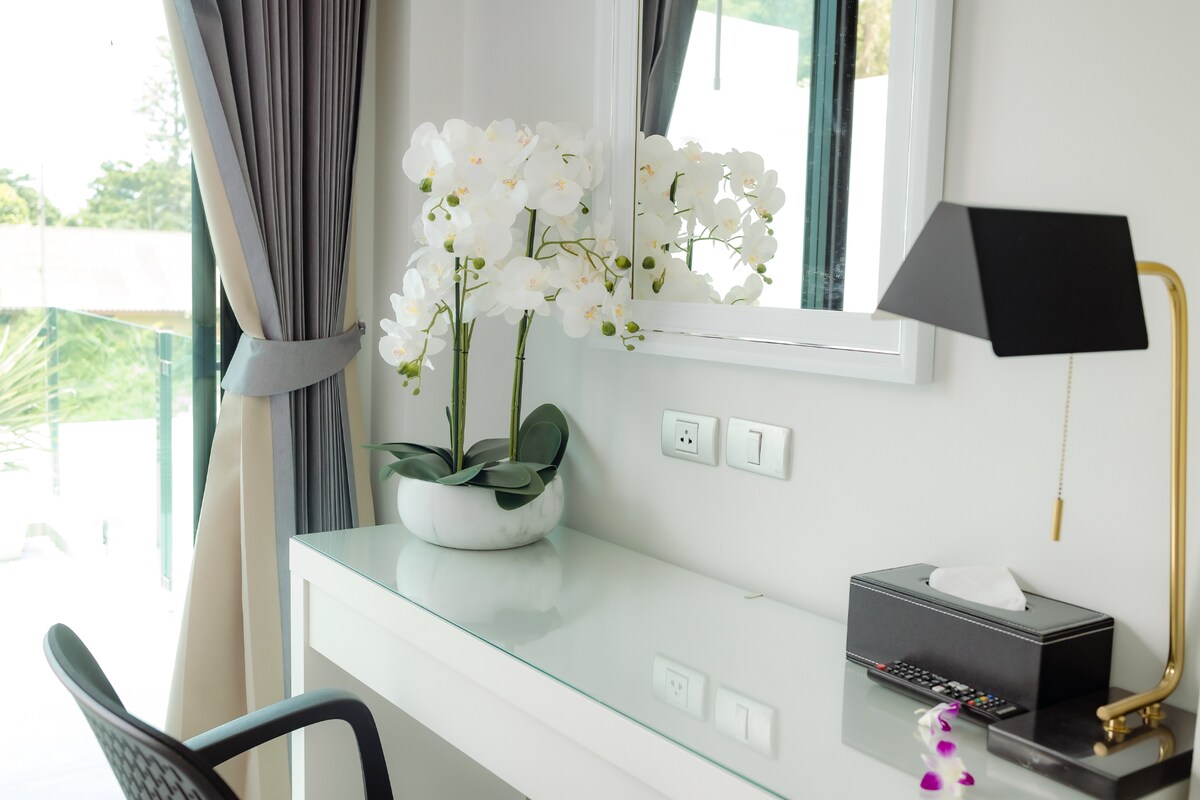 We stayed 4 nights at this villa. Communication was very good and always kind from the beginning. The location is also very good and absolutely quiet because of the proximity to the beautiful White Sand Beach. Dad's house is as on the pictures very large and super clean. The amenities and furnishings are high quality and in good condition. Highlighted are 3 large brand new Samsung Smart TVs and the stable, fast internet. The staff on site are very friendly and helpful, the cleaning in between is perfect. Check in and check out smoothly and quickly. We would love to come back to stay.
