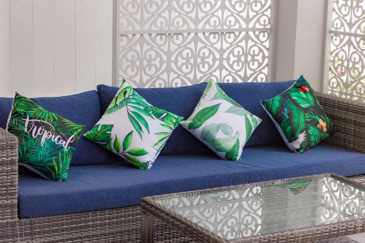 Step through wide glass doors and let the island breeze drift through the open living area. The design encourages you to move seamlessly between inside and out, mornings by the pool, lazy afternoons in the shade, and evenings gathered around the dining table as the day cools.