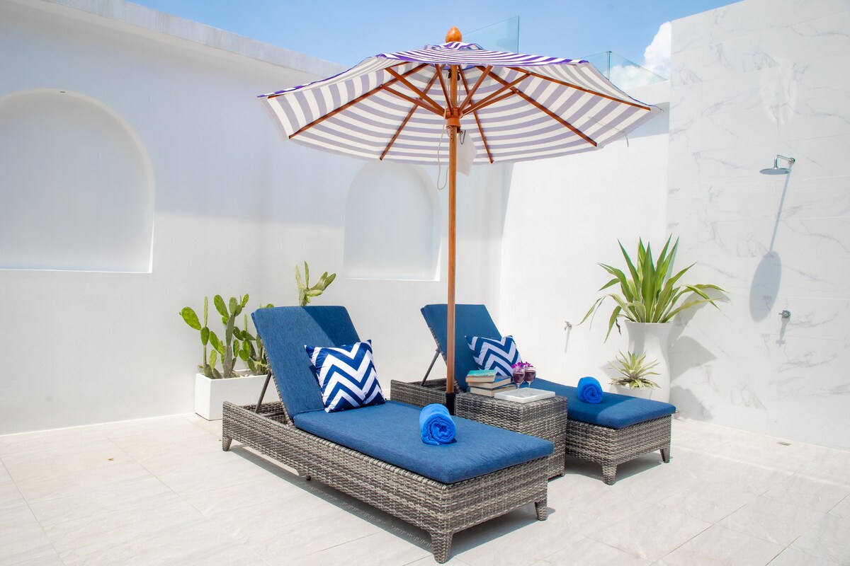 The open-concept living area blends comfort and connection, a space to lounge, read, or catch a show on the TV while still feeling part of the island rhythm outside. Air conditioning keeps the space cool, while large glass doors flood it with natural light. For those working remotely, the dedicated workspace and reliable WiFi make it easy to stay connected.
