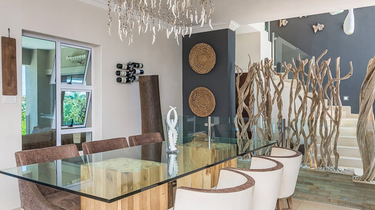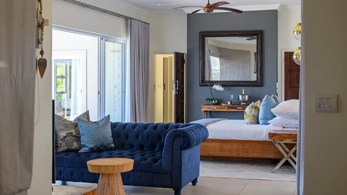 This home offers four spacious suites, each designed for comfort and privacy. The Hole in One master bedroom has a king bed, ensuite bathroom, dressing room, and its own lounge area with spectacular ocean views. The Birdie suite features two single beds and an ensuite bathroom, set on the upper level. On the ground floor, the Par suite provides a king bed and garden access near the pool, while the Bogey suite has a queen bed, ensuite bathroom, and large windows that bring in the ocean breeze.