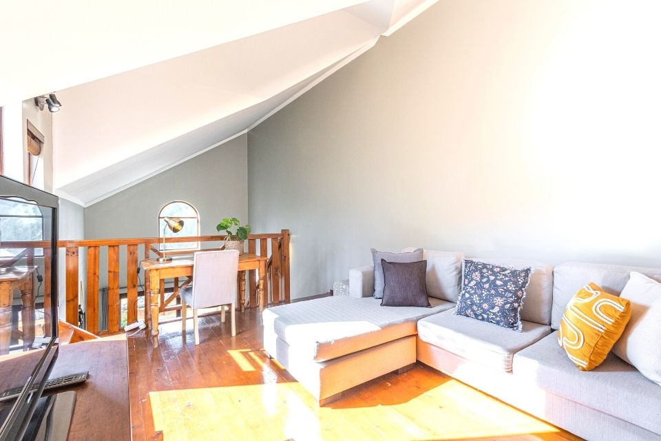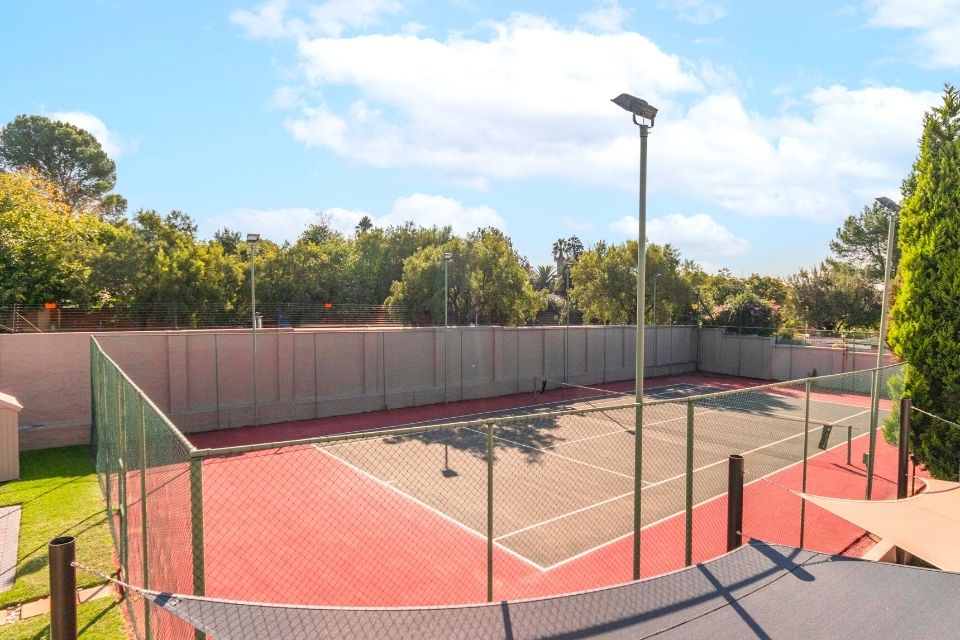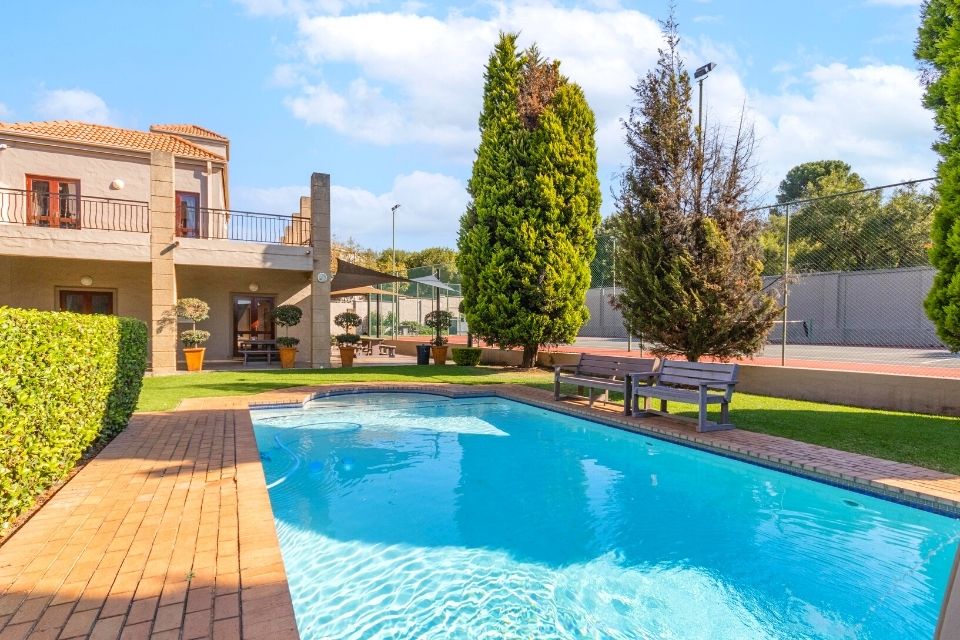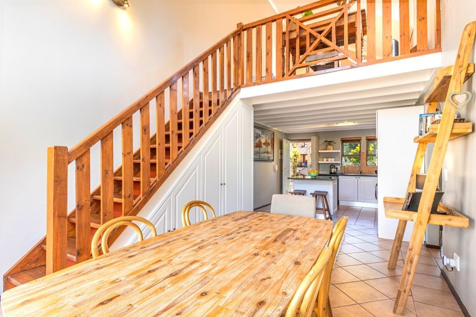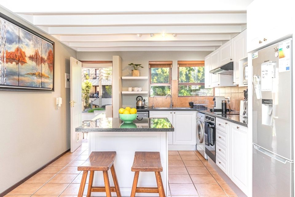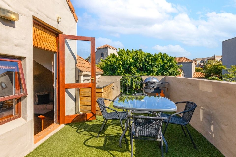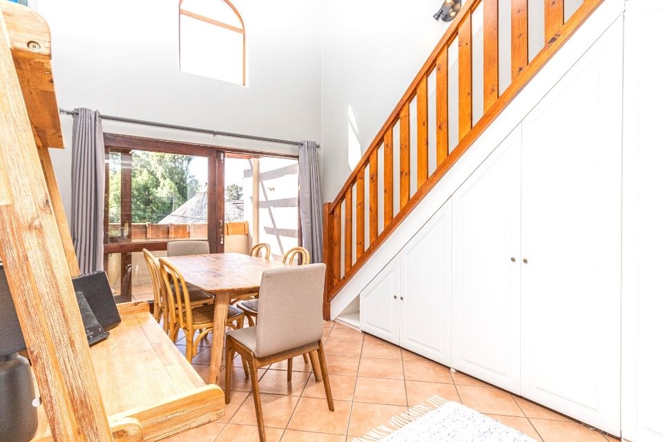 Experience gorgeous sunshine and tranquility in this modern 2 bedroom, 1 bathroom loft apartment located in a secure and exceptionally well maintained estate in Paulshof. Enjoy the outdoors with 2 private balconies and a mini astro turf putting green. It comes fully equipped including a smart TV with Netflix, DStv Stream, YouTube and more, uncapped WIFI, dishwasher and a Nespresso machine. Cleaning included twice a week by the awesome Lizzy.The space comprises of a granite top kitchen with centre island, dining room, workspace, 2 well-sized bedrooms, full bathroom and small balcony. Upstairs you have a 58’’ smart TV lounge that comfortably seats all guests, another workspace and large terrace with a putting green, outdoor furniture and gas braai. Access to a stunning communal swimming pool, tennis court and clubhouse (which can be rented for functions). You have 1 under covered parking bay and there is tons of visitor parking in the estate. The storage under the stairs is for private use.