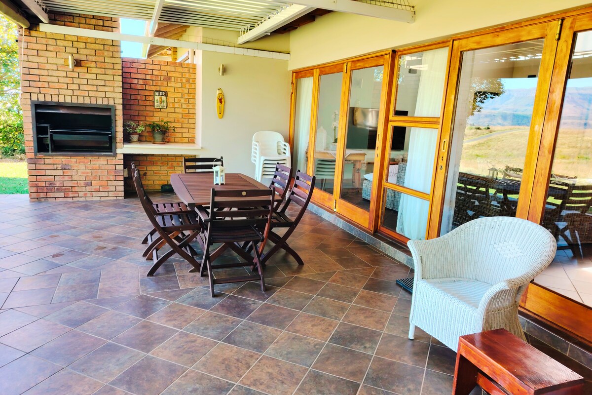 Step outside onto the spacious veranda and take in the breathtaking views of the Drakensberg mountains. You can enjoy a traditional wood or charcoal braai, perfect for those long evenings as the sun sets over the mountains. With no other homes in sight, the location offers complete privacy and peace. It’s a special place to unwind and truly disconnect.