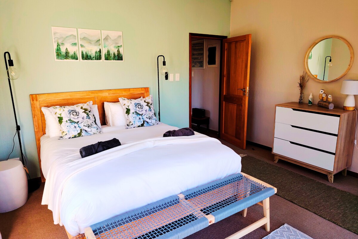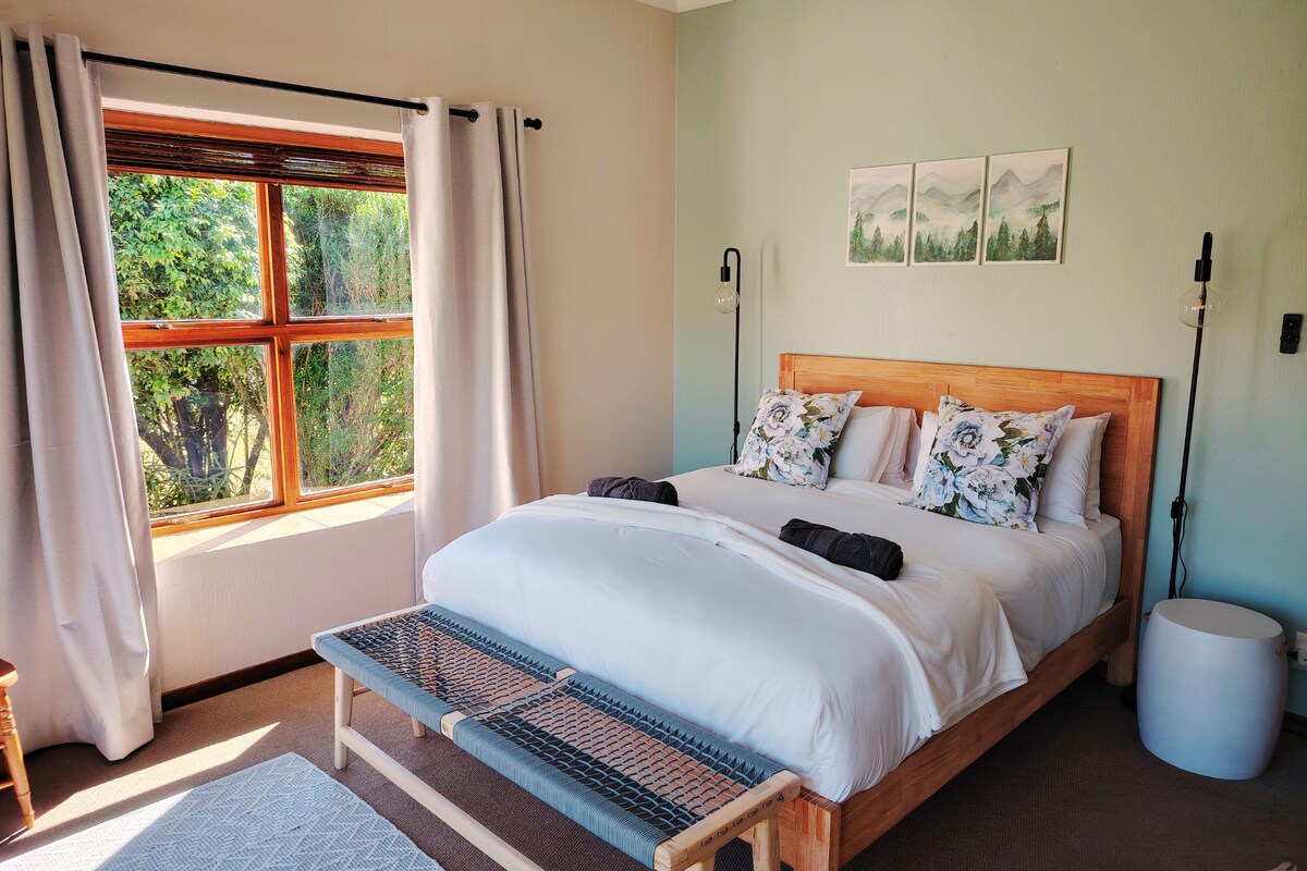 At Haus Mikaya, we’ve created a sanctuary where you can feel at home, surrounded by the stunning landscape of the Drakensberg. The house comfortably accommodates up to seven guests with:- Bedroom 1: Two single beds OR a King-sized bed