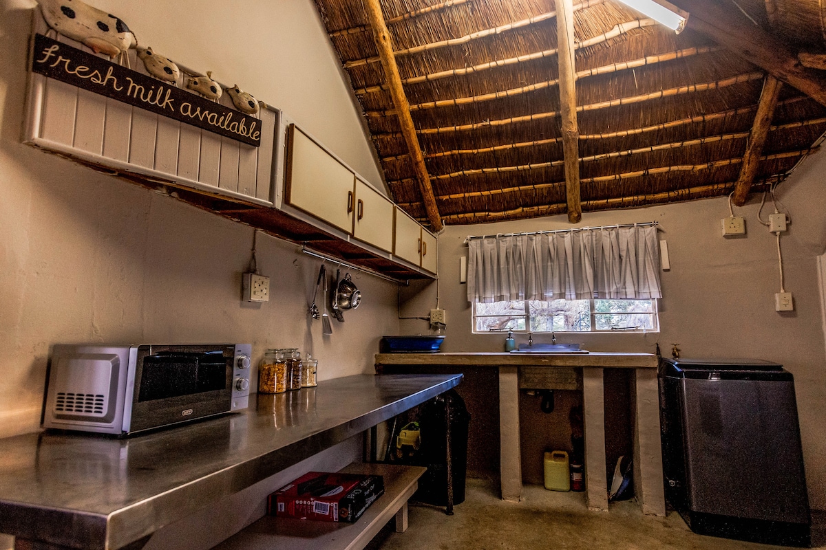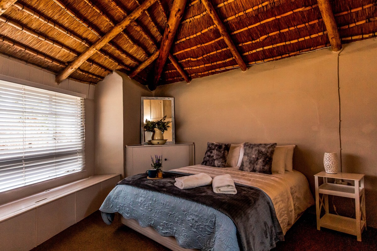 🔹 The Rondavel (Sleeps 3) – A rustic, traditional bush getaway with a double-bottom bunk and a single-top bunk, plus an attached bathroom with a shower.