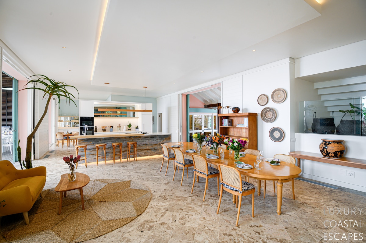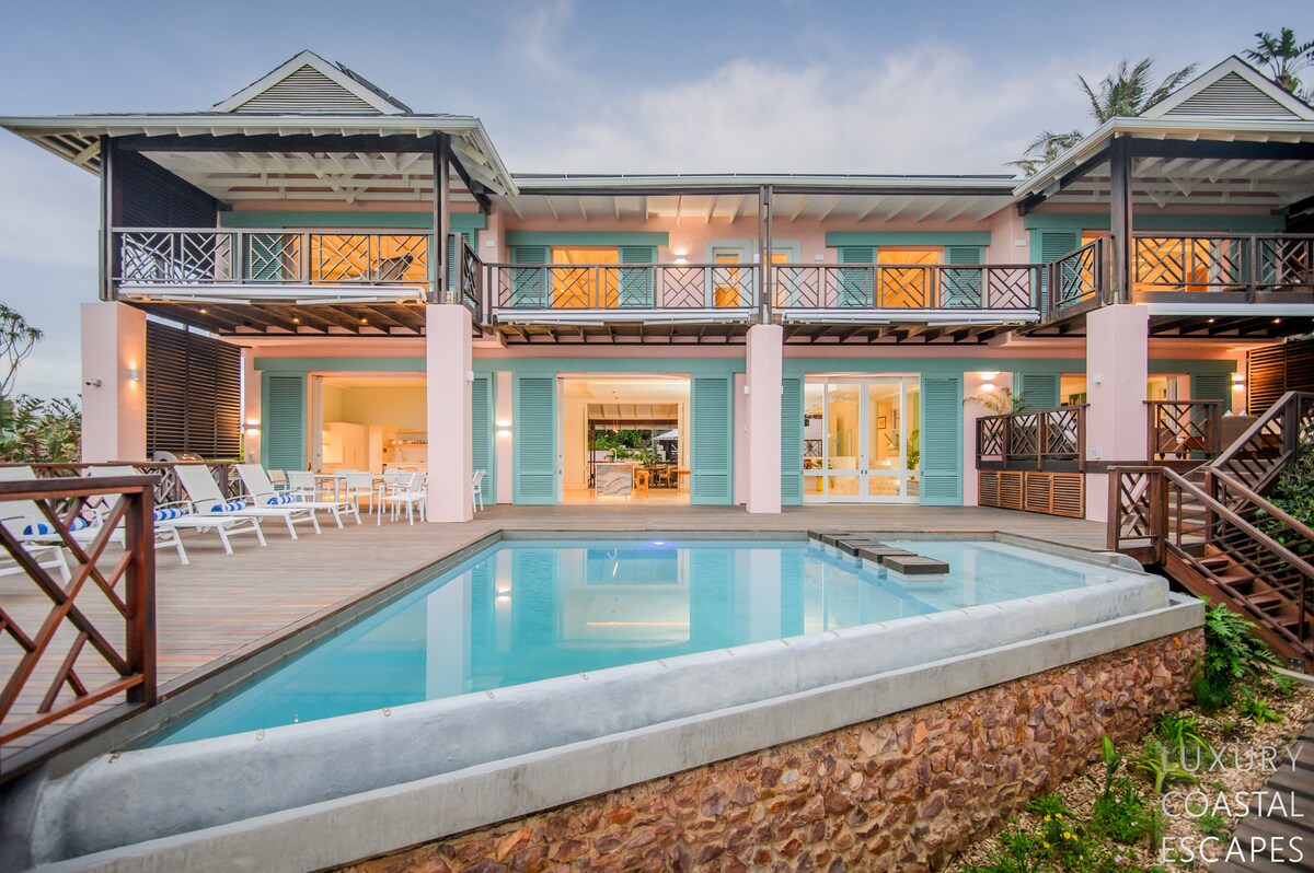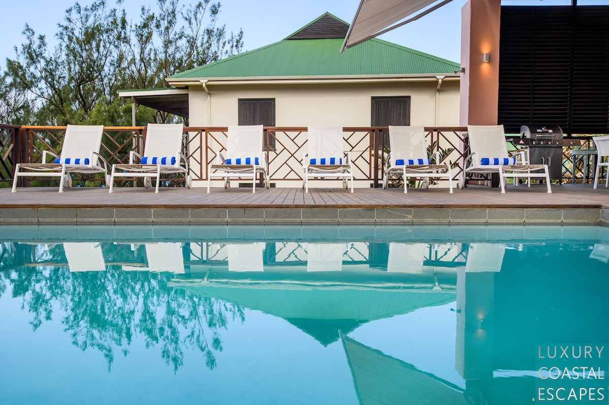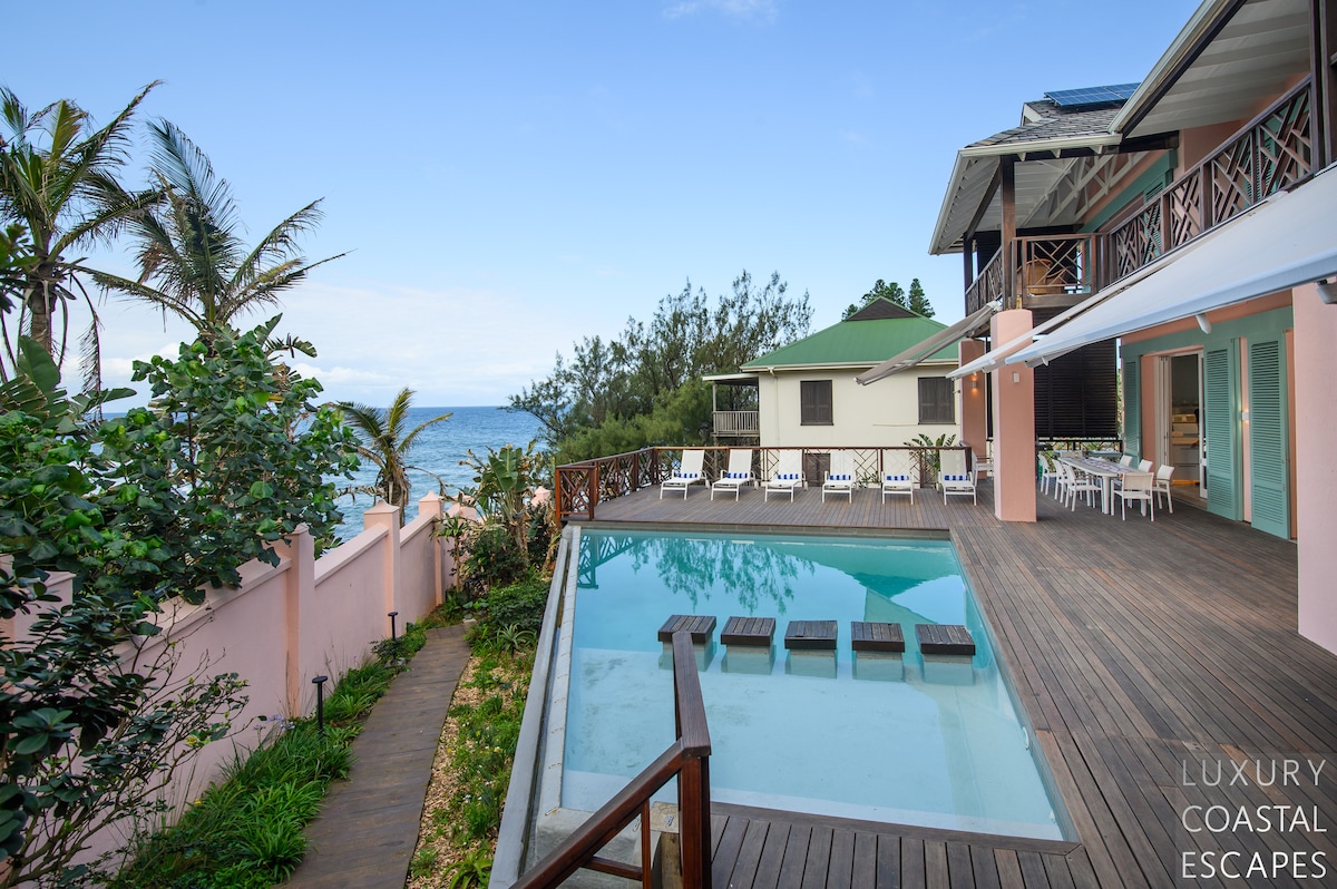 Very large home over two floors with beautiful uninterrupted sea views over Christmas Bay Beach. Front and back pool with large entertainment areas. Private beach gate directly onto the beach.