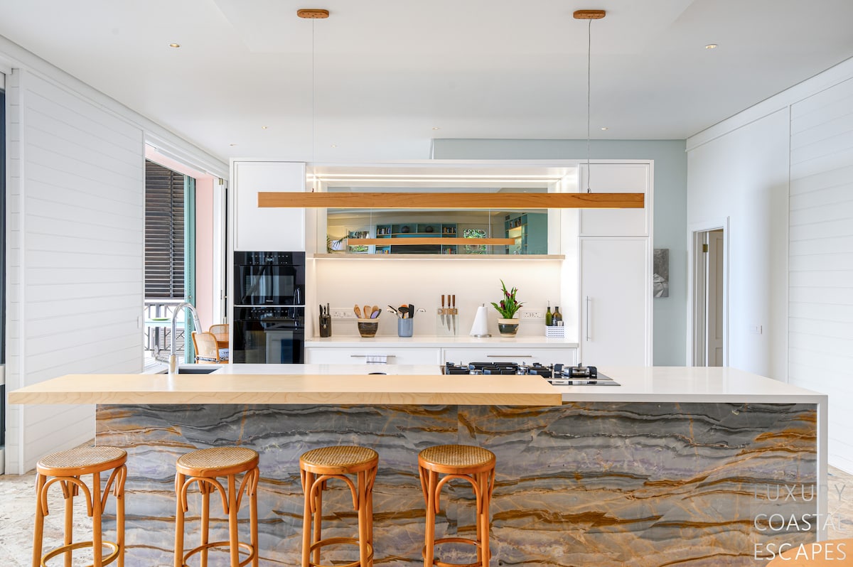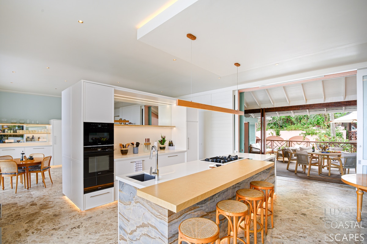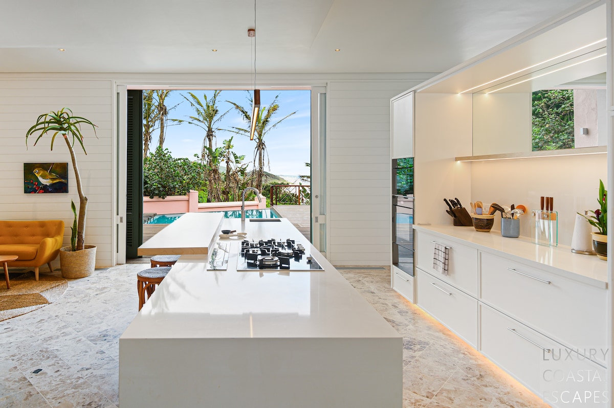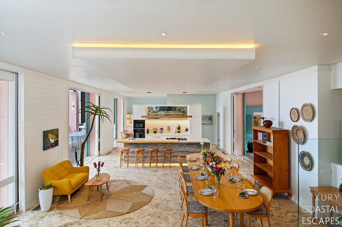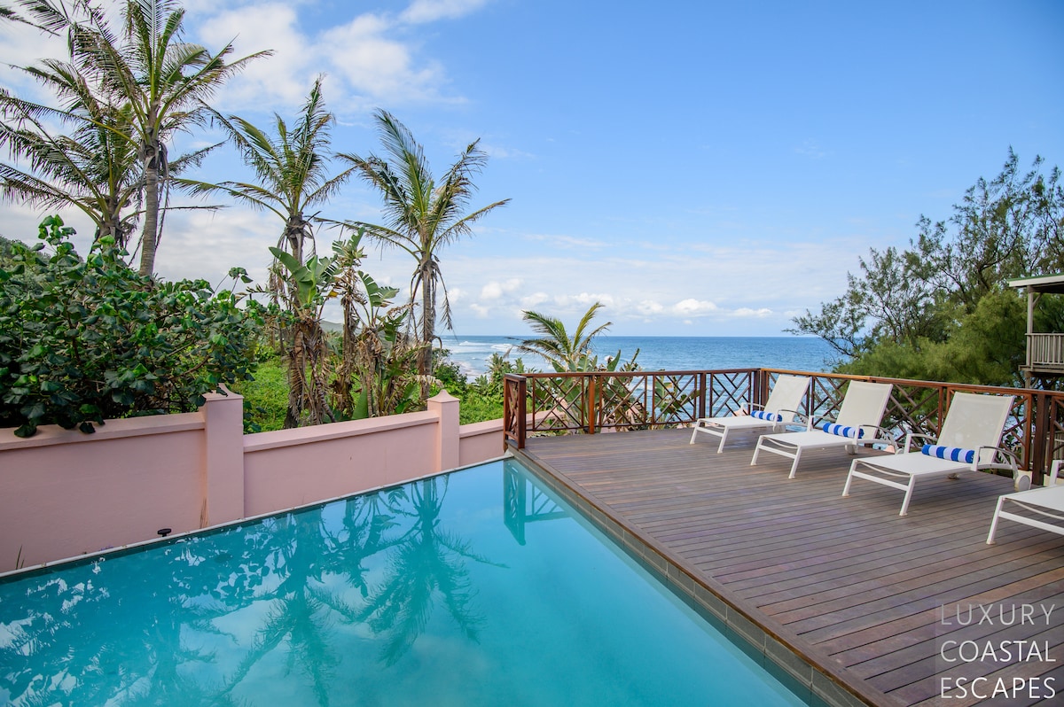 Very large home over two floors with beautiful uninterrupted sea views over Christmas Bay Beach. Front and back pool with large entertainment areas. Private beach gate directly onto the beach.