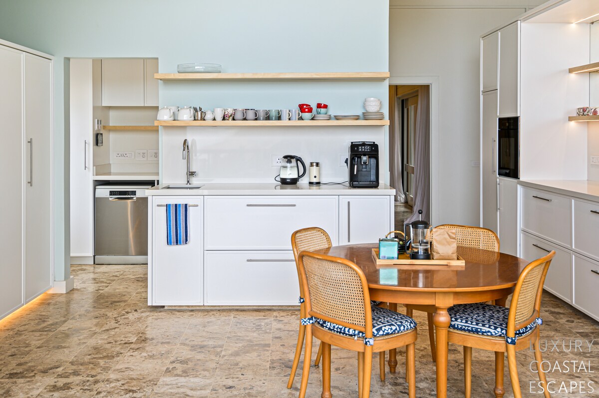 Our front kitchen is thoughtfully equipped with everything you need to cook and dine during your stay, including essential cookware, crockery, cutlery, and basic pots and pans.