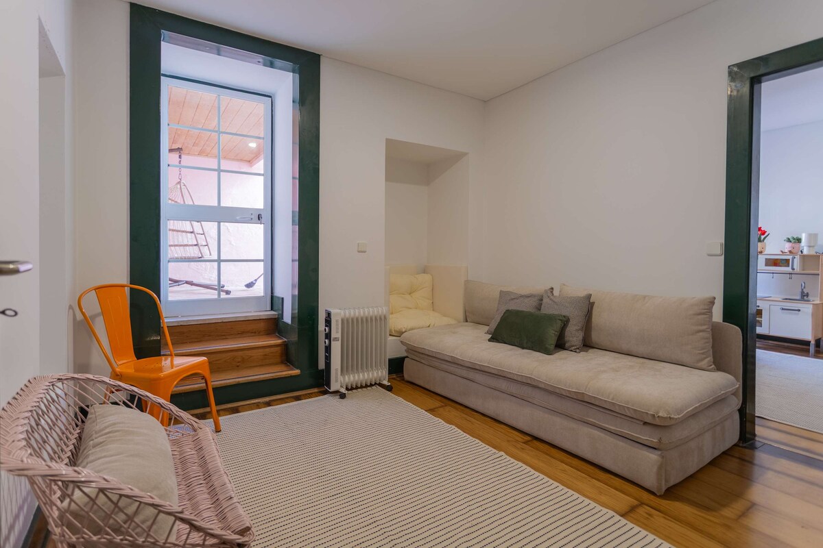Bright, Welcoming and Perfect Location: The duplex apartment, accessed via staircase (no elevator), is bathed in Lisbon's enchanting natural light during the day. At night, the Portuguese shutters ensure a peaceful, restful sleep. The home has two main entrances with easy access to Estrela. The apartment is very quiet while the areas around the apartment ~5 min walking is very lively especially at the weekends and you have plenty of options to eat out. My wife's favourite garden square is moments from the apartment, including two playgrounds for kids to enjoy!