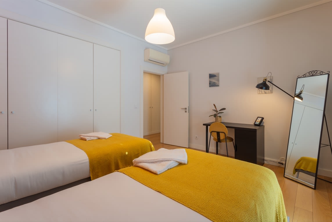 We had a great stay in this apartment, located comfortably away from the busy tourist areas. Getting to the main attractions is easy — all means of transportation are within a 10-minute walk. A Lidl supermarket is also nearby, which was convenient. The apartment itself? In one word: stunning (and clean). It offered plenty of space for the four of us, including two full bathrooms. Each room, including the well-equipped kitchen, had air conditioning. The space felt truly like a home away from home. The private parking spot is a great bonus, though entering and exiting requires a bit of confidence, as it’s narrow and steep. A special mention goes to João and his support team. They went above and beyond to make our stay comfortable. Questions were answered quickly, and any small issues were resolved fast. They clearly care about their guests. And yes, you’ll hear traffic outside and airplanes due to the proximity to the airport. However, with the windows closed this wasn’t a problem.