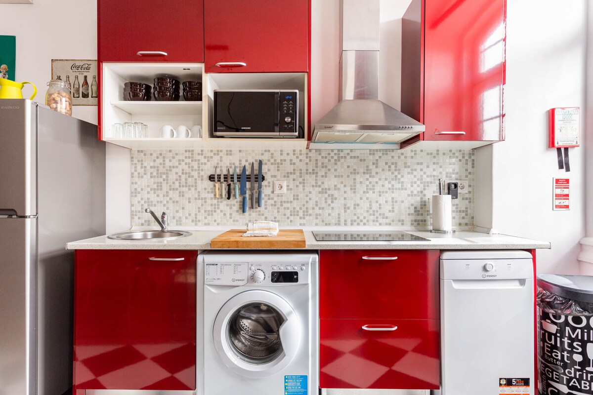 In the heart of Lisbon - near the club/bar district. The place is very spacious, more than enough room for our family of 6 adults. The building has 2 entrances, one that has 1.5 flights of stairs, and the other side that has elevator access. Everything is provided - dishes, cutlery, cleaning supplies, laundry detergent and drying rack for your clothes, etc etc. Only thing I would note is to bring earplugs if you're staying on a Friday night. The bar music can seep through a little bit but is fine with earplugs. Minimal noise on Thursday and Saturday night.