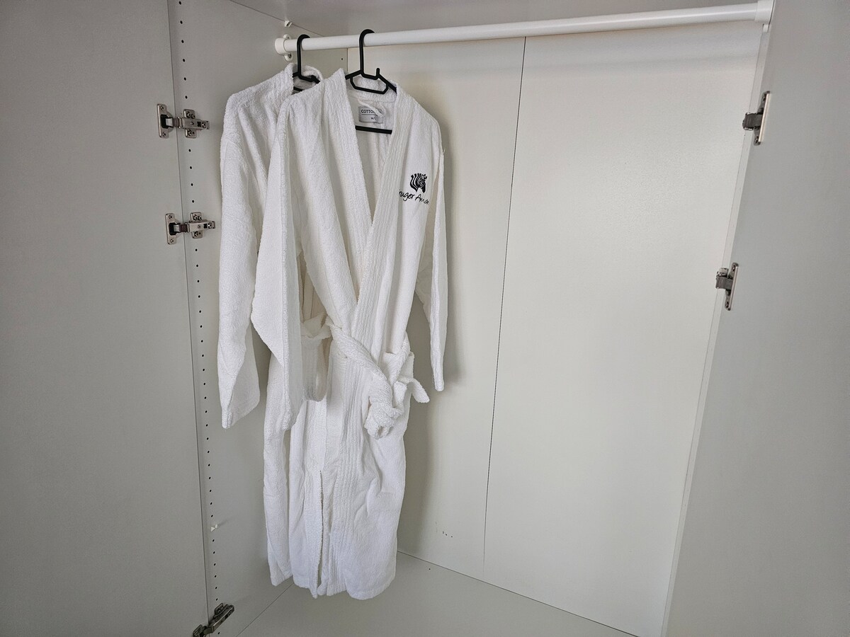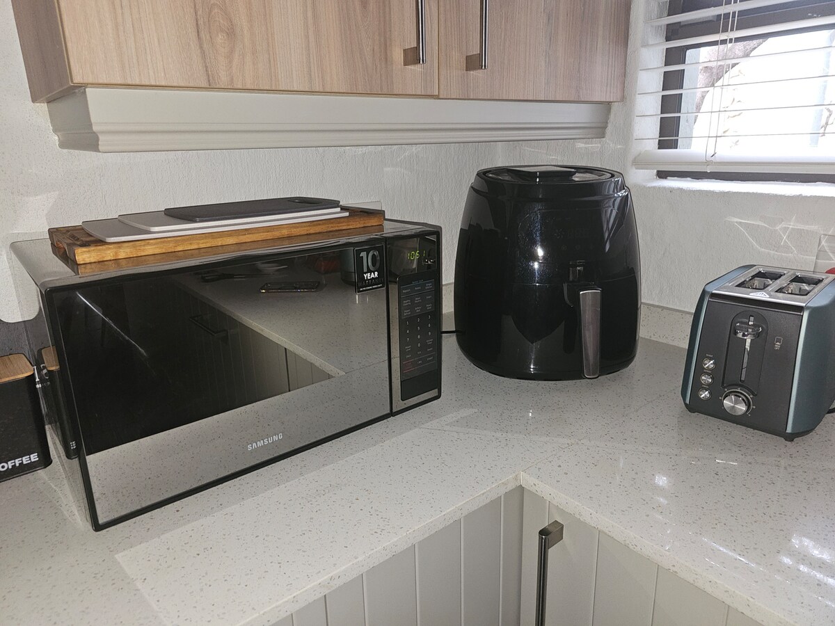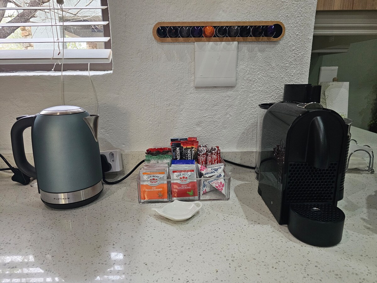 For your enjoyment, we provide coffee, tea, various sugars, milk pods, serviettes, paper towels, and a selection of Nespresso pods. Additionally, a small and large French Press is available for those who prefer filter coffee.