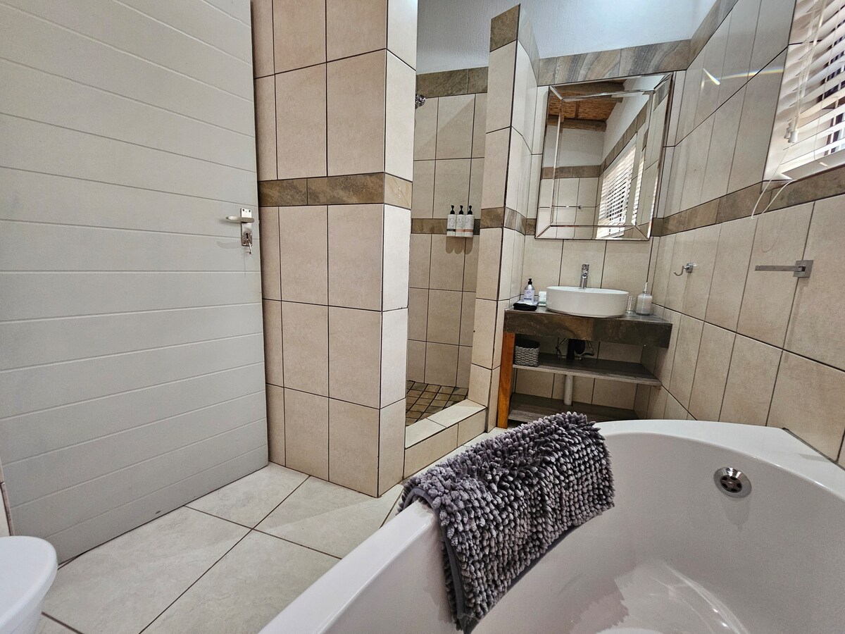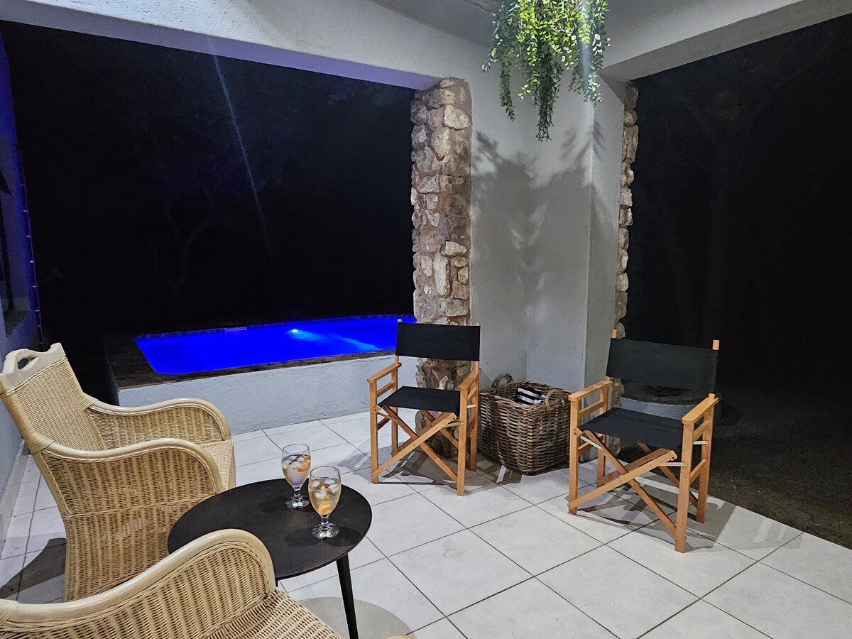 This cosy self-catering home is fully equipped with everything you need and is comfortably furnished. The splash pool has martini seats for enjoying the hot days.