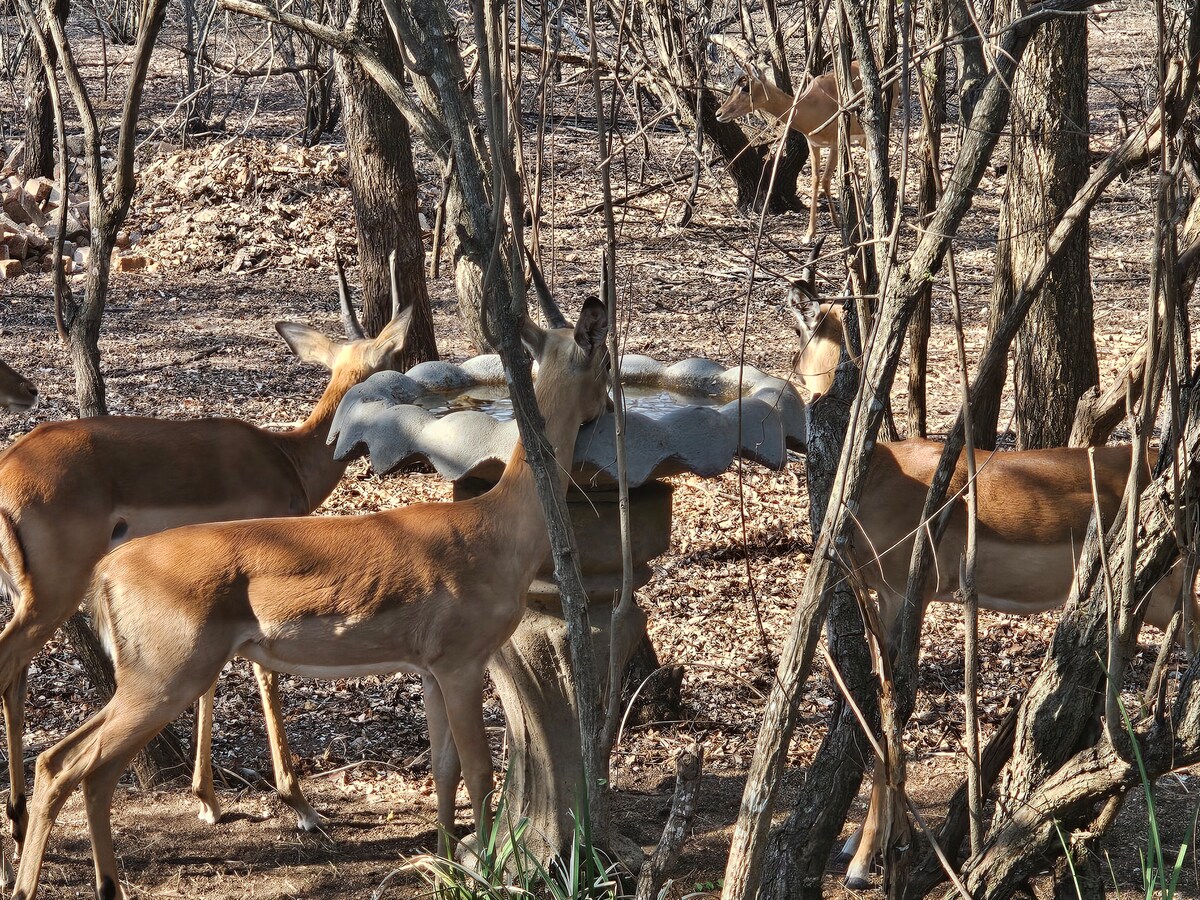 Peace and tranquility are what you can expect in the bush at Marloth Park with wild animals visiting.