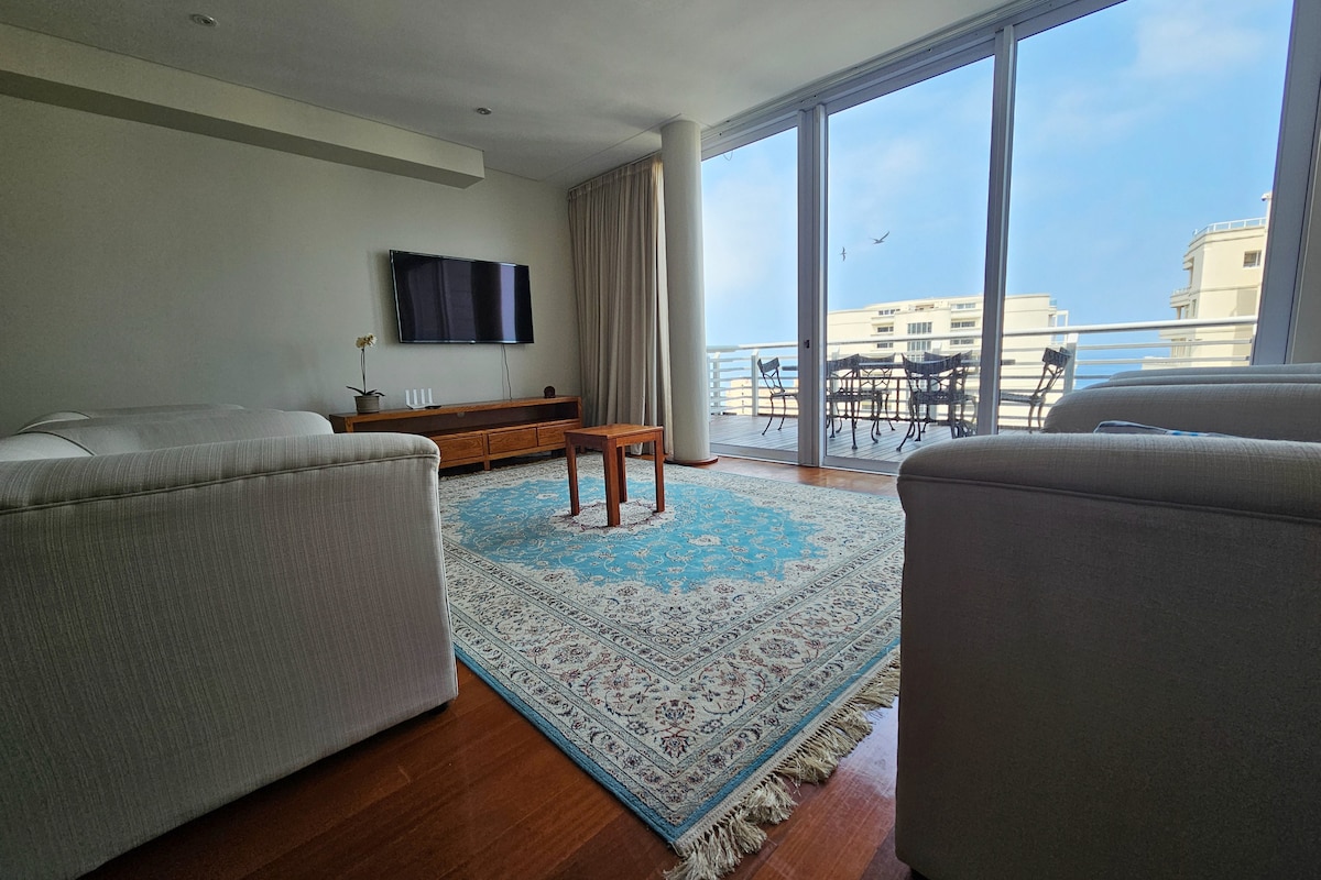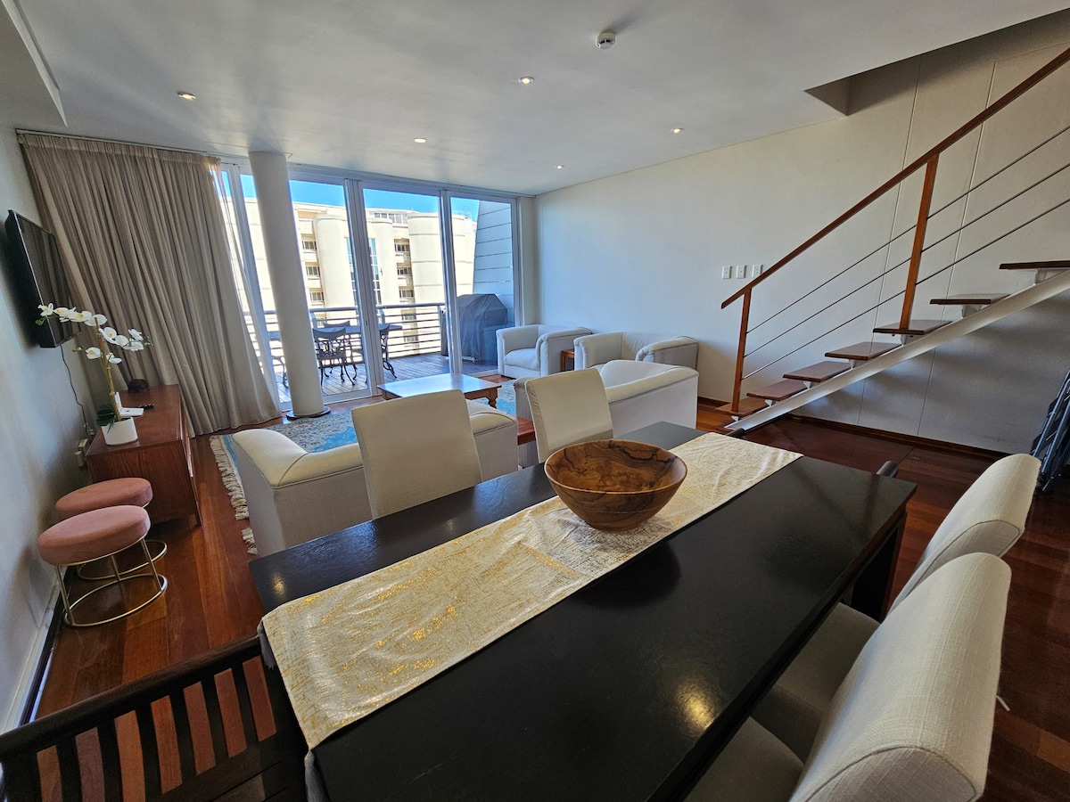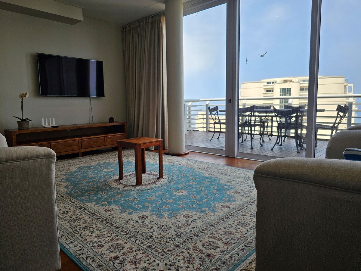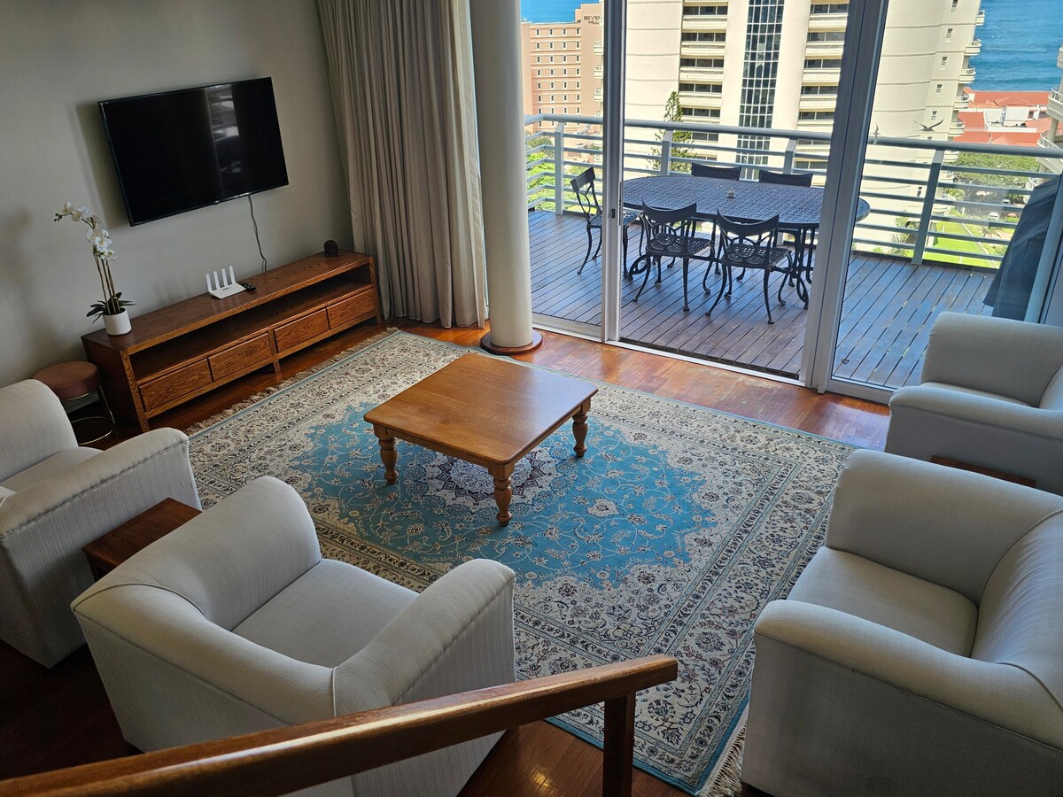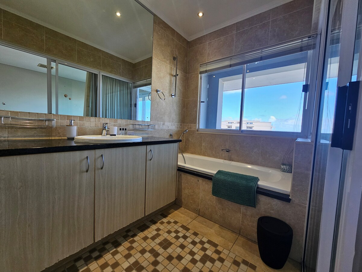 Self-catering, serviced 3 bedroom, 2.5 bathroom Penthouse.Only 1 block from the beach.