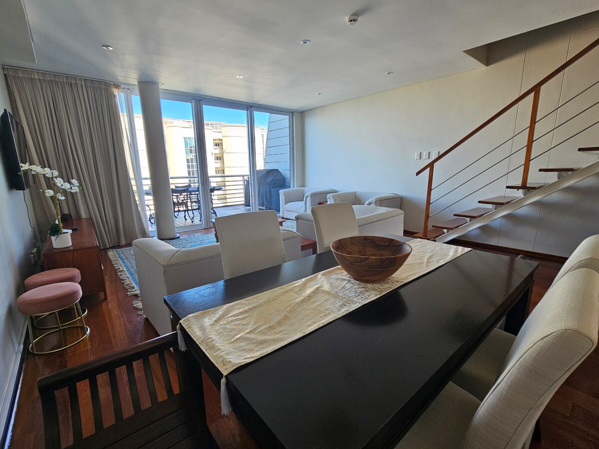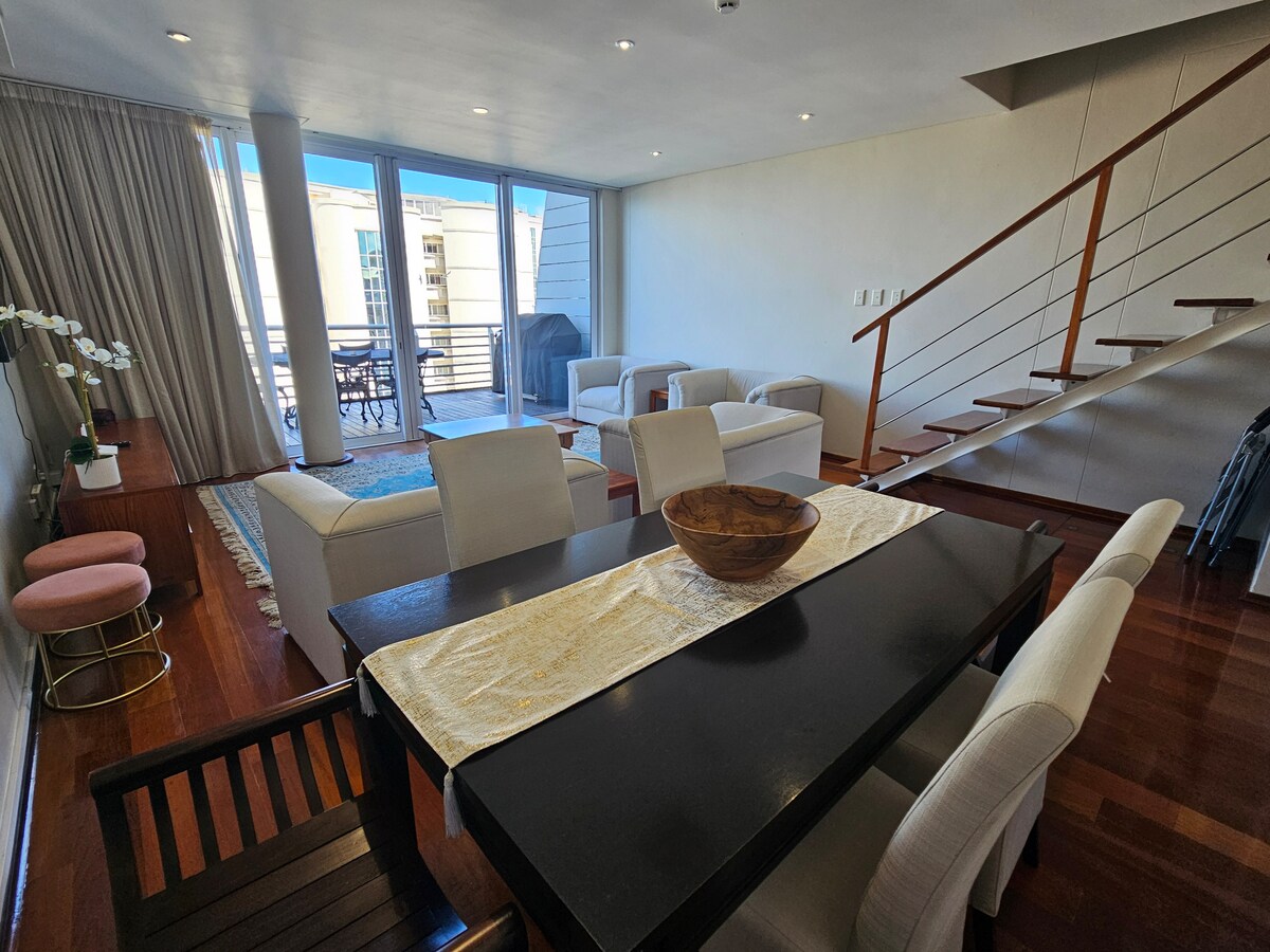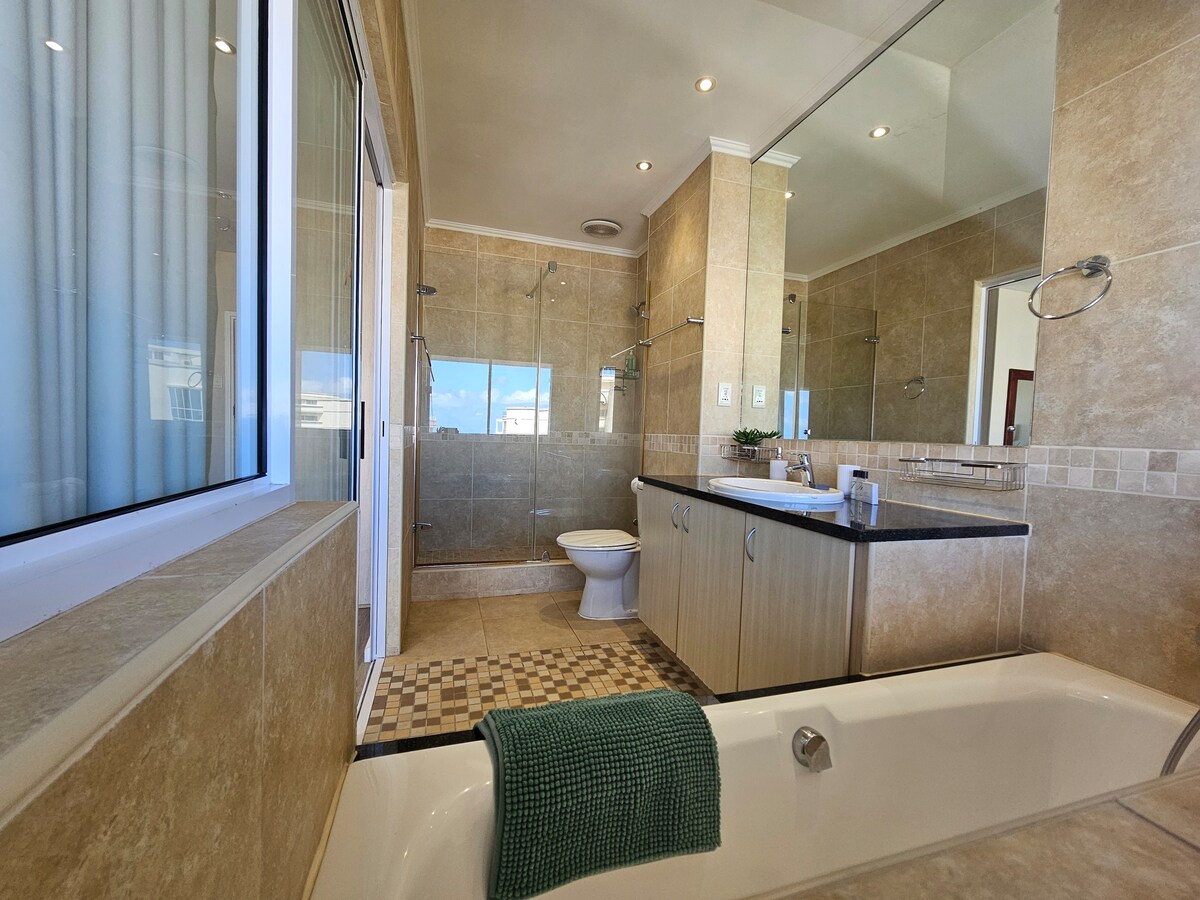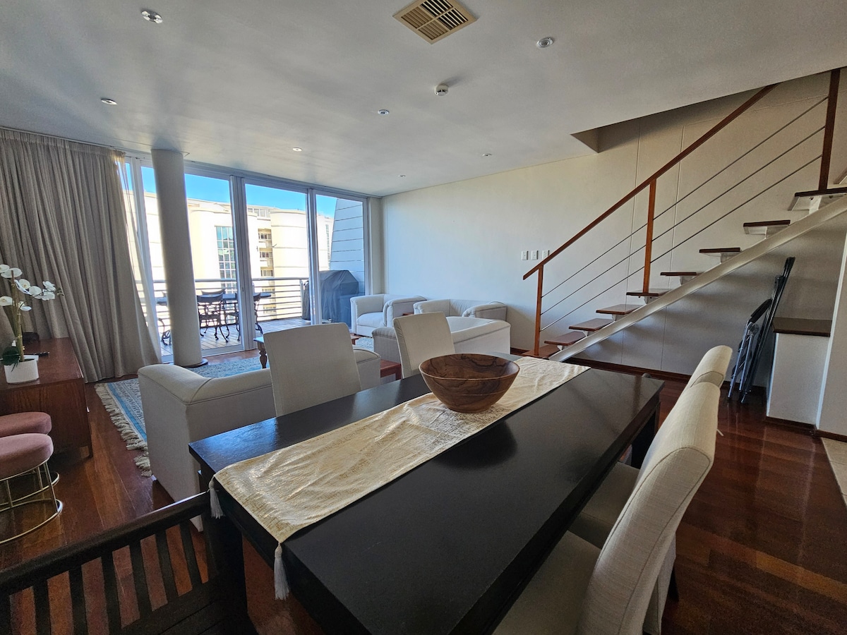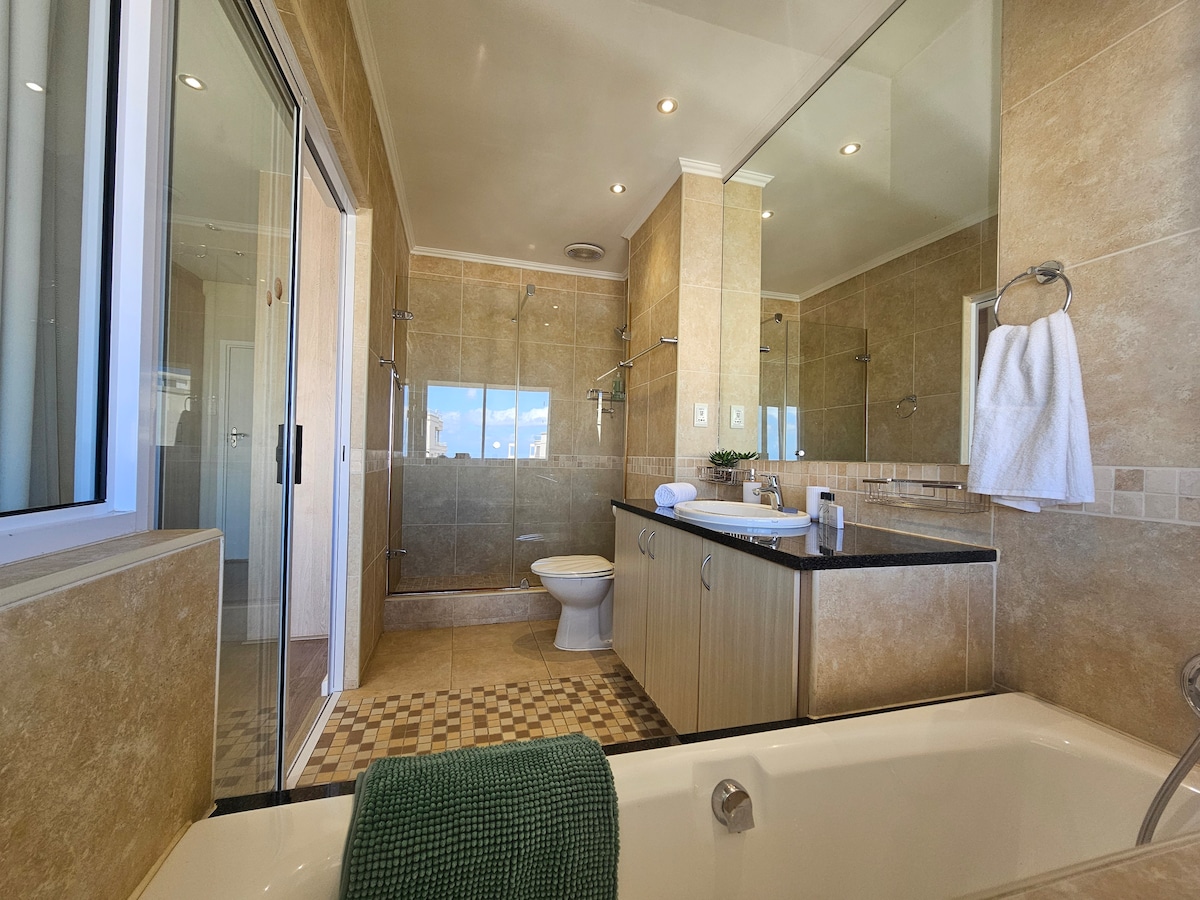 Self-catering, serviced 3 bedroom, 2.5 bathroom Penthouse.Only 1 block from the beach.