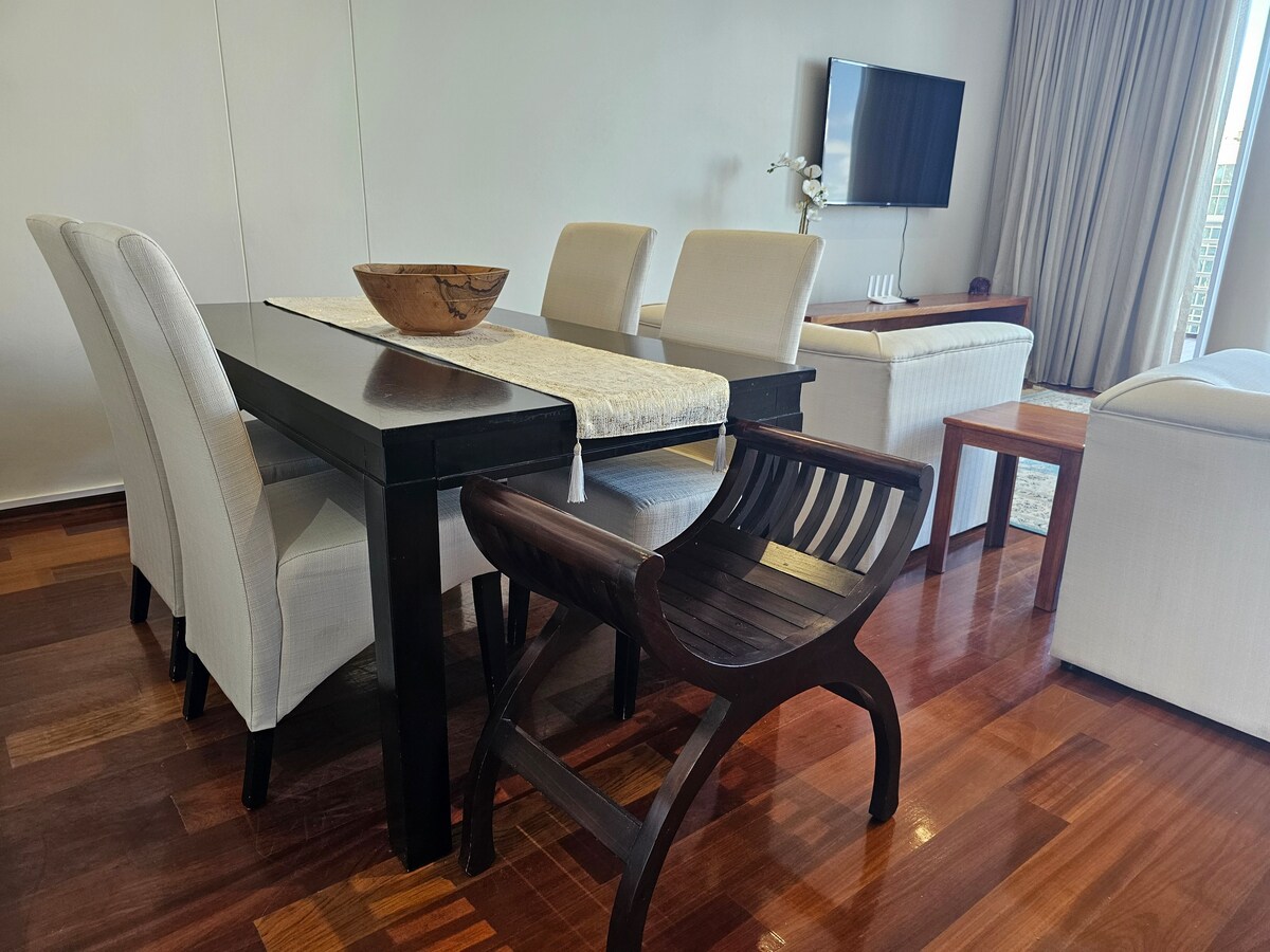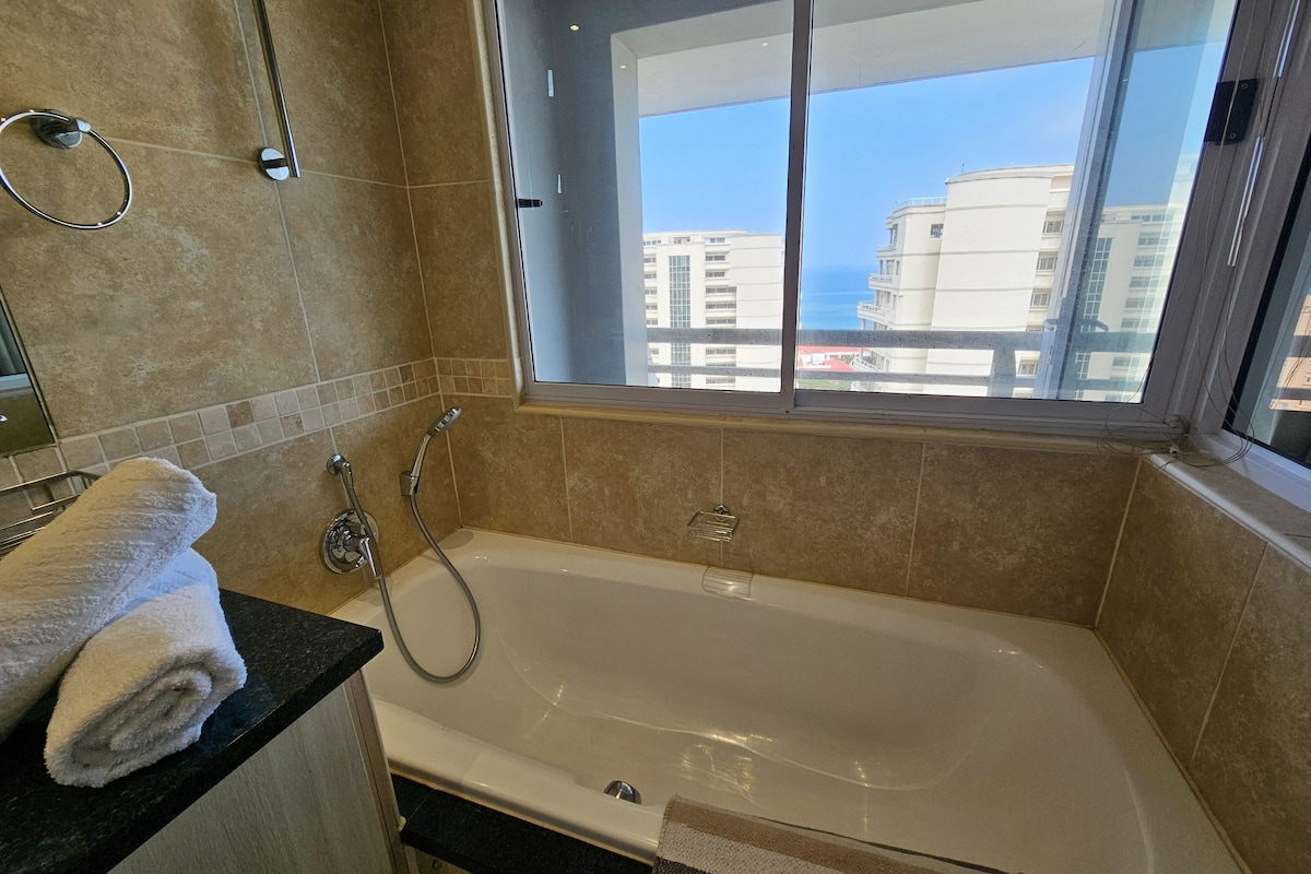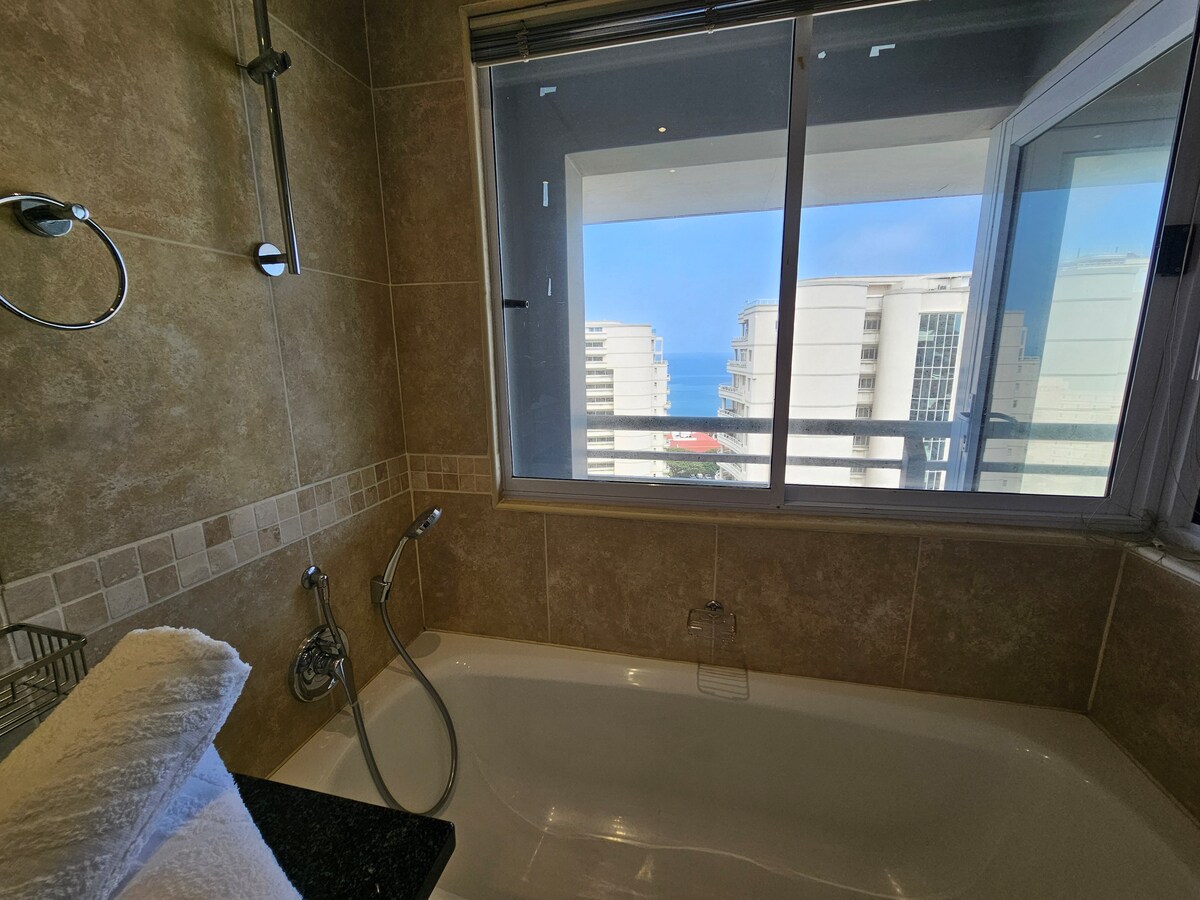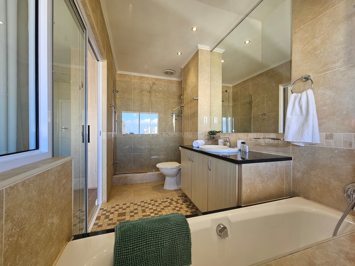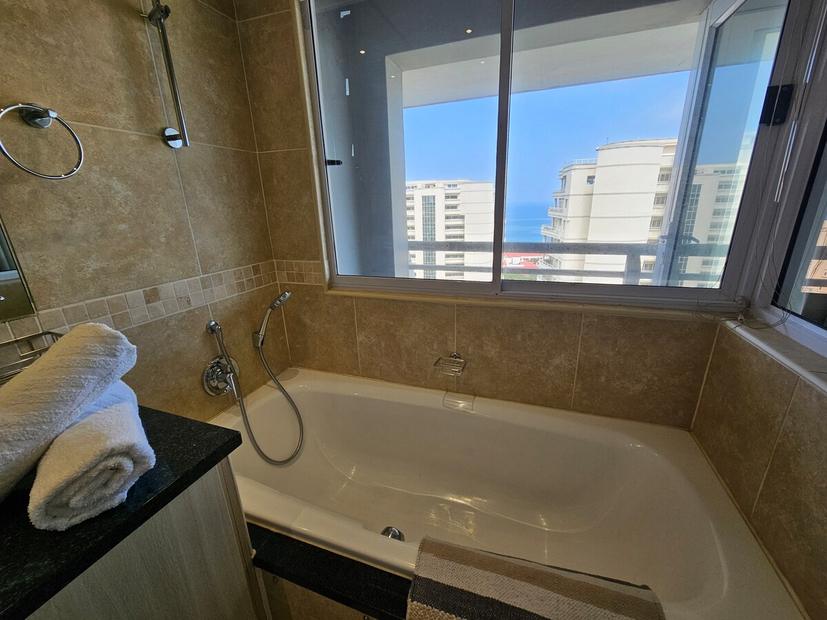 Self-catering, serviced 3 bedroom, 2.5 bathroom Penthouse.Only 1 block from the beach.