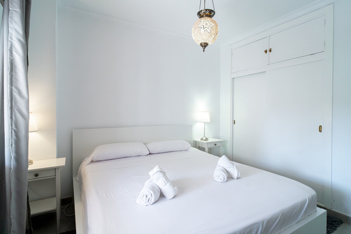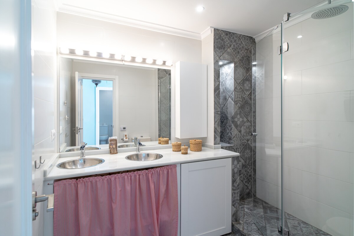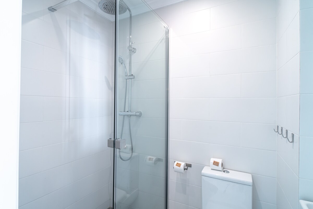 Retreat to the comfort of two elegantly designed bedrooms, each thoughtfully furnished for a restful and luxurious stay. The master bedroom features a queen-size bed (180x190 cm), while the second bedroom offers two single beds (90x190 cm), perfect for flexibility and comfort.