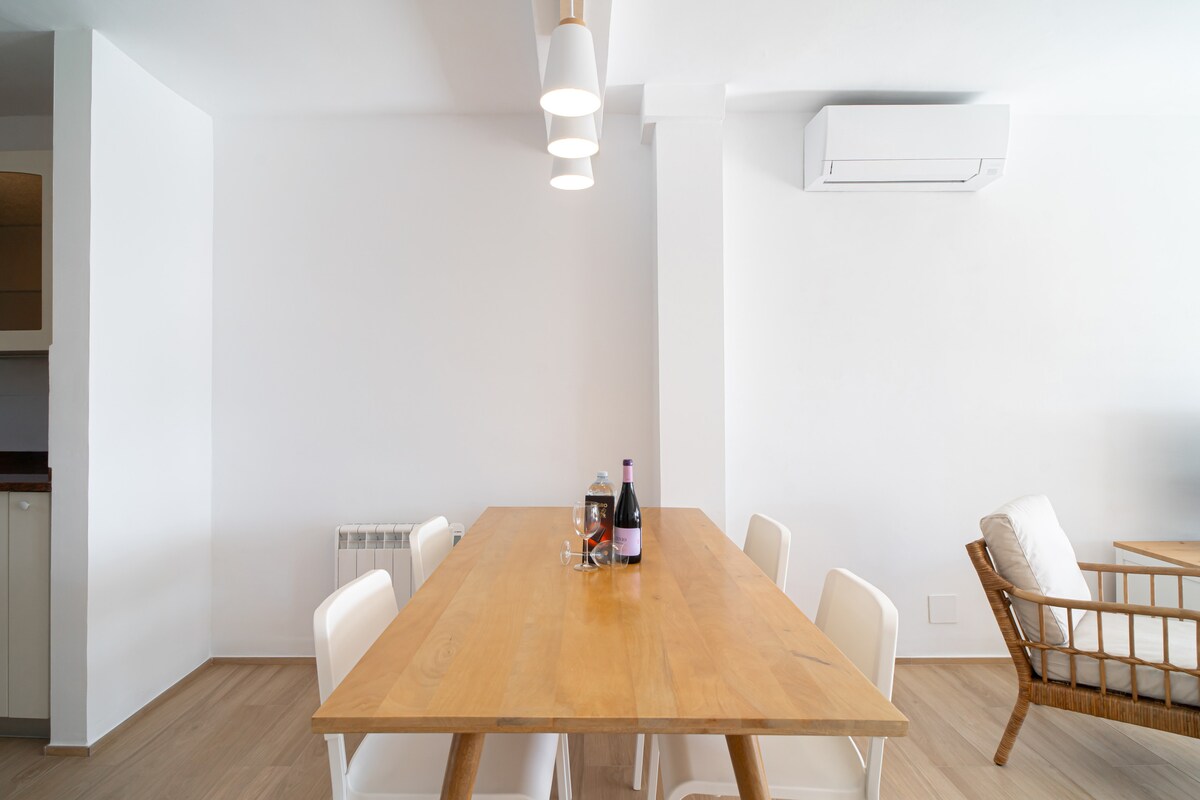 Spacious and bright living-dining room with direct access to the terrace.