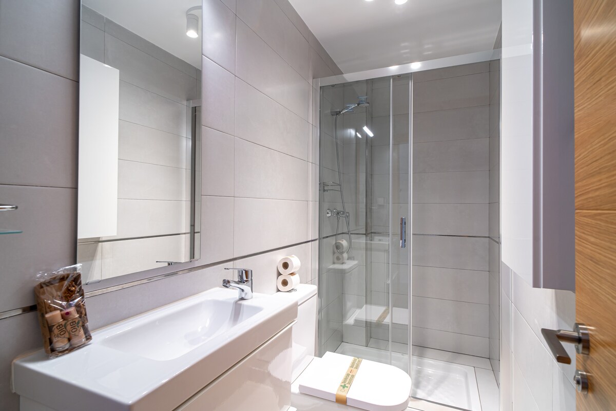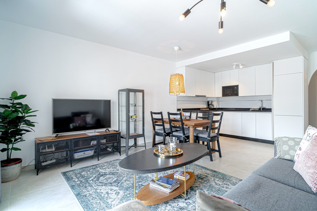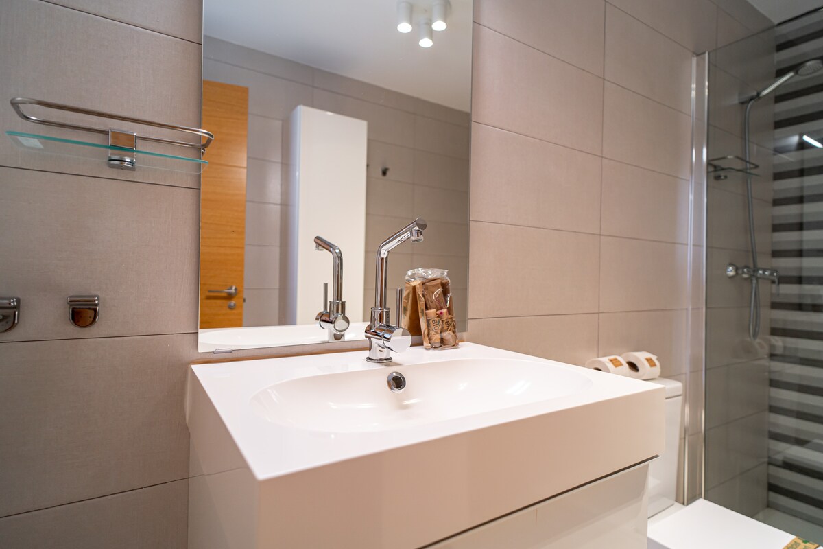 On the ground floor, you will find an elegant bedroom with a double bed, which can be adapted to two comfortable single beds of 80x190 cm, depending on your needs. Enjoy a spacious and cosy living room equipped with a flat-screen Tv with international channels and high-speed Internet access, ideal for relaxing or staying connected. The state-of-the-art kitchen is fully equipped with the latest appliances, ready for you to prepare your favourite dishes. In addition, this floor features a contemporary bathroom with shower for your convenience. To complete the experience, a lovely terrace with a modern gas barbecue awaits you to enjoy unforgettable moments outdoors.