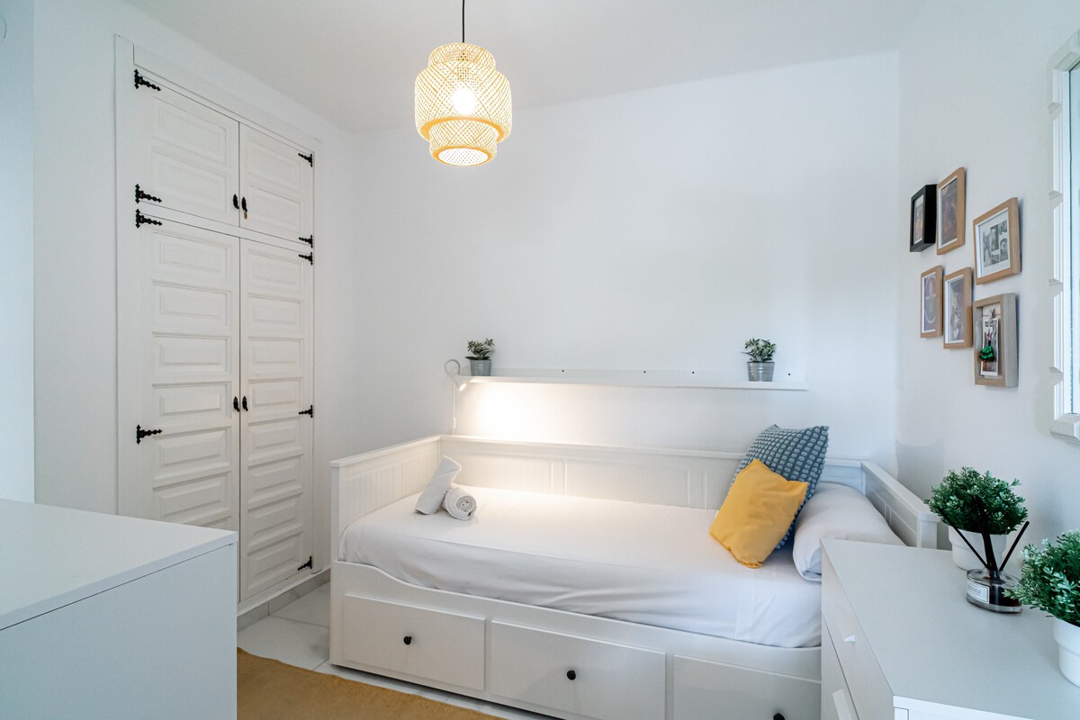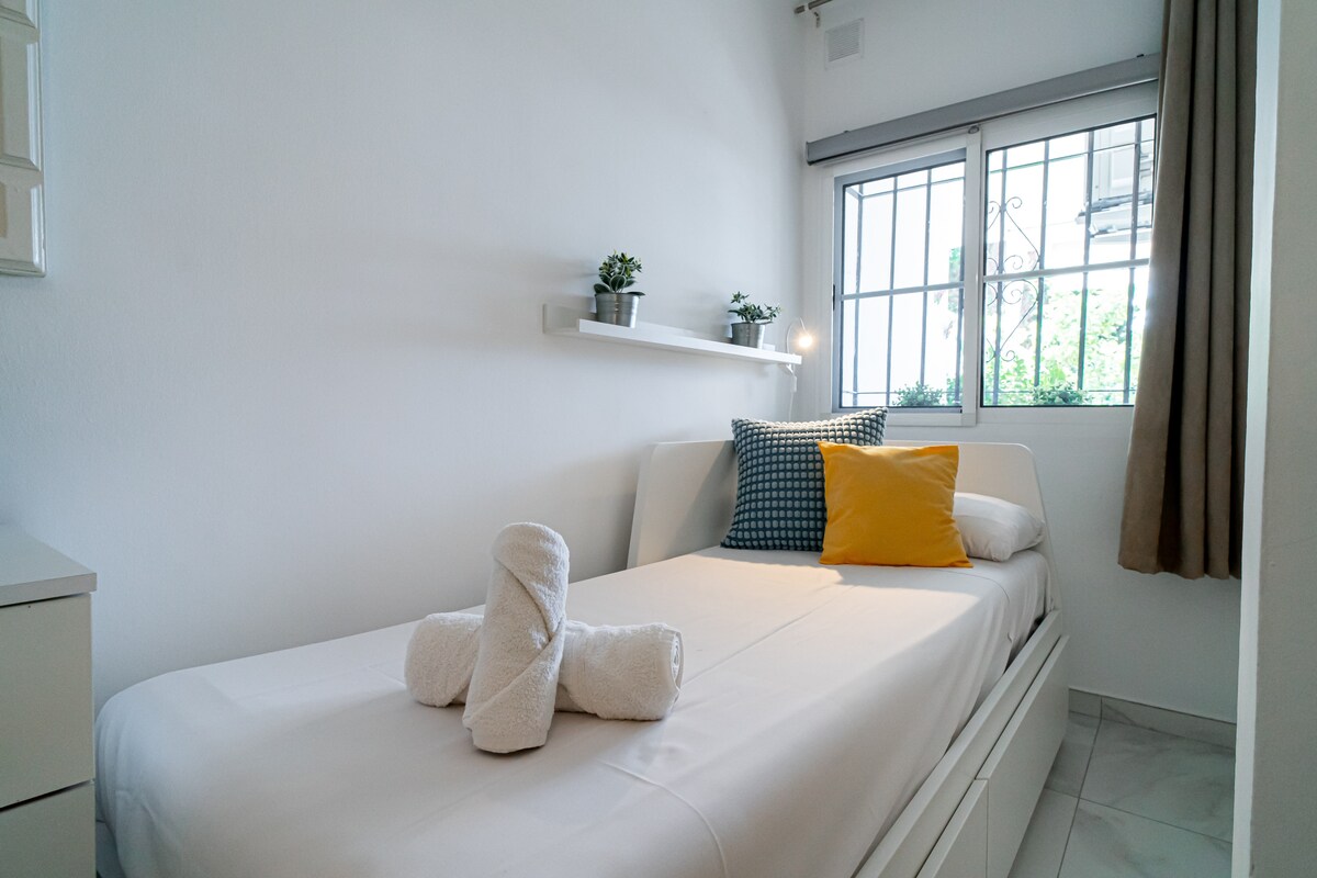 Welcome to Capuchinos 46, in San Juan de Capistrano, a charming street-side flat with a lovely private garden, perfect for enjoying the sun and tranquillity. This cosy home has two bedrooms: one with a comfortable king-size double bed and the other with two single beds, ideal to suit your needs. From the living room, you have direct access to the garden, a perfect spot to relax and unwind.