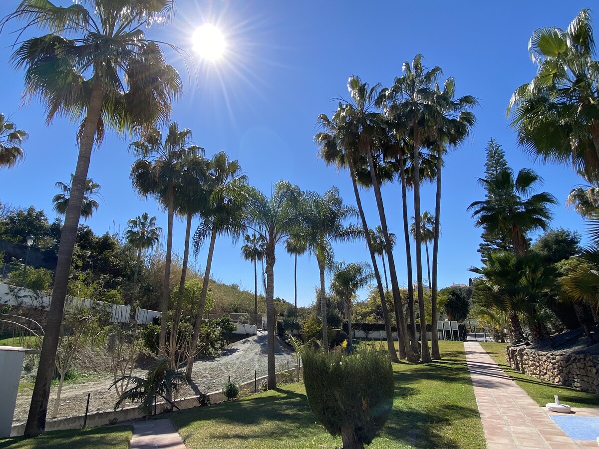 Located in the exclusive Oasis de Capistrano urbanization, this 2-bedroom apartment (1 double bed and 2 single beds) is the perfect destination for summer and winter vacations. It has a large private terrace with spectacular views of the sea, the mountains and the gardens.Oasis de Capistrano is a picturesque urbanization with typical Andalusian-style houses surrounded by tropical gardens and palm trees. It is located in the eastern part of Nerja. The apartment is a 15-minute walk from Burriana Beach. The urbanization also has 2 swimming pools of different depths and a restaurant. At the entrance of the urbanization there is a stop for the urban bus.