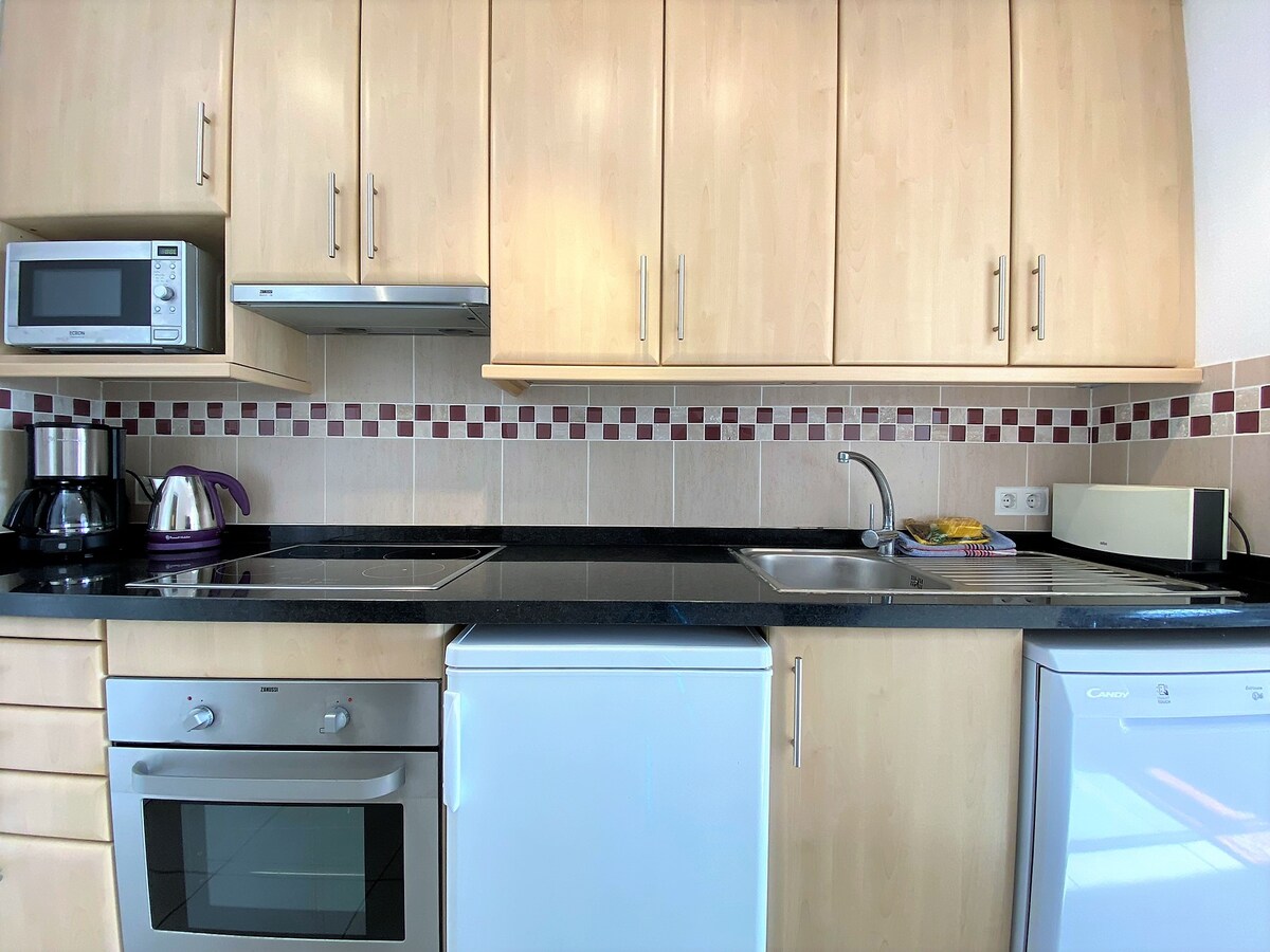 Urbanizacion is a 15-20 minute walk to the beach. supermarkets nearby. fully equipped accommodation, with everything you need. small terrace as ocean views. air conditioning and fans for heat seasons. parking and swimming pool. unbeatable cleanliness and service from the company. highly recommended