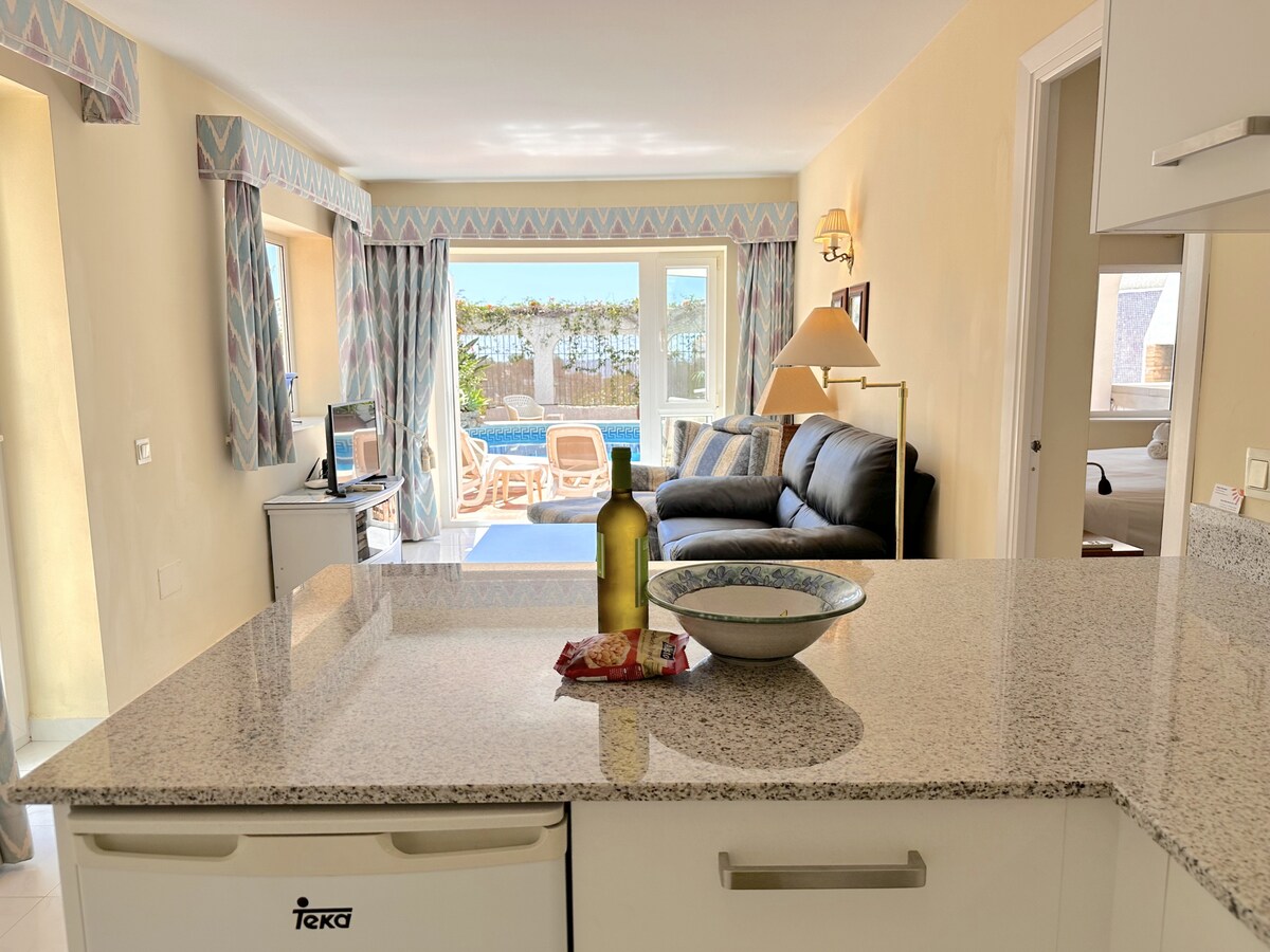 Retreat to your own private oasis with this charming and bright holiday rental flat Chimenea 15 Casasol. Tucked away in a quiet area with picturesque surroundings, this flat is an ideal getaway for those seeking a serene holiday.This charming flat offers a modern and fully equipped kitchen, a cosy living room with flat screen TV and a bedroom with King Size Bed, making it the perfect place to enjoy your stay. The property is designed with your comfort in mind and features a shower/bathtub, air conditioning and international TV channels in Spanish, English, German, Norwegian and Swedish. You will also have access to free Wi-Fi and high-speed internet throughout your stay.