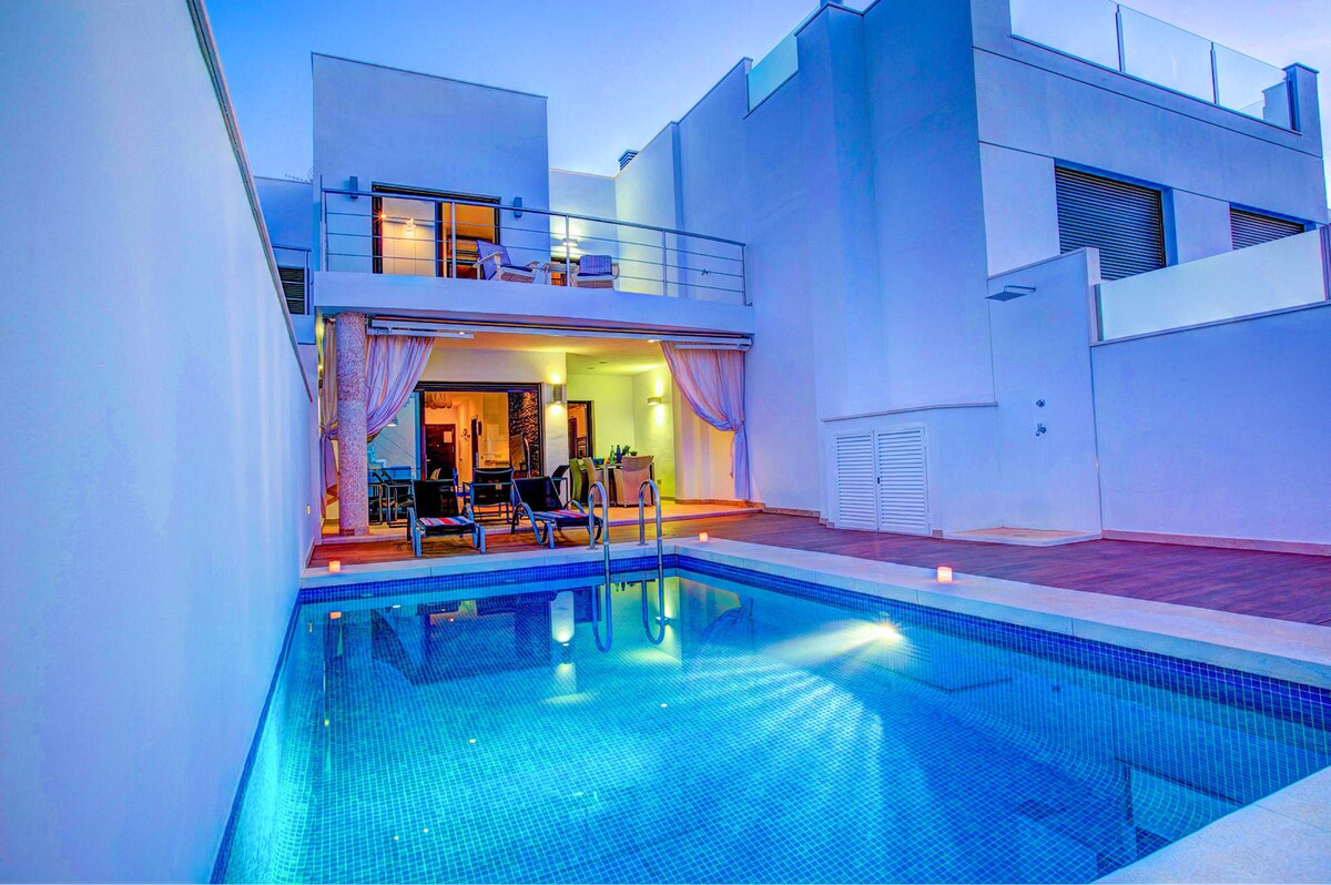 Experience the epitome of luxury at the amazing Villa Luisa Seaview 3 in Torrox Costa, with breathtaking sea views and a spacious terrace with private swimming pool with salt water system for gentle, eco-friendly swimming.This luxurious villa measures 120 square metres in total, and boasts a terrace of over 100 square metres that offers a splendid sea view and comes with an outdoor dining area, cosy seating and barbecue facilities for you to enjoy a perfect alfresco meal. In addition, the terrace is equipped with a wind-sensing awning that protects you from the sun, allowing you to savour your meals and drinks in a comfortable shaded spot. Plus, you can stay connected throughout your stay with the villa's high-speed Internet access.
