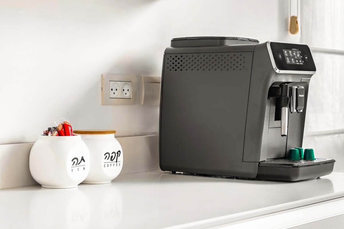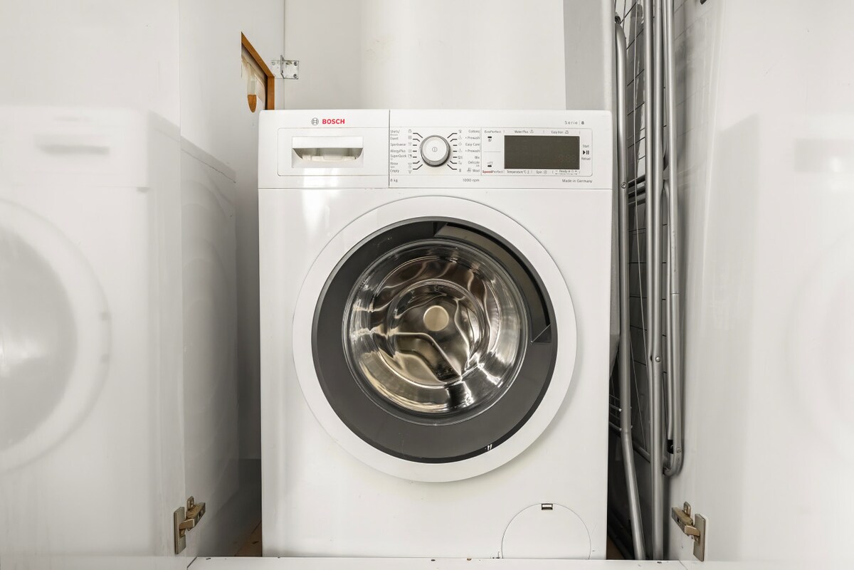 The apartment includes a dedicated parking space. Entertainment is at your fingertips with a 55-inch Smart TV, and essential amenities like a hair dryer, iron, vacuum cleaner, and kettle are all provided to make your stay hassle-free.