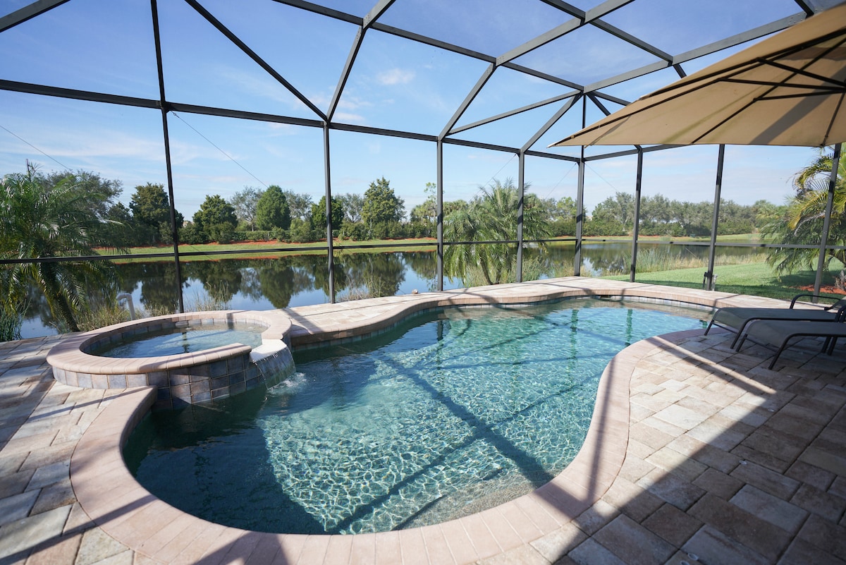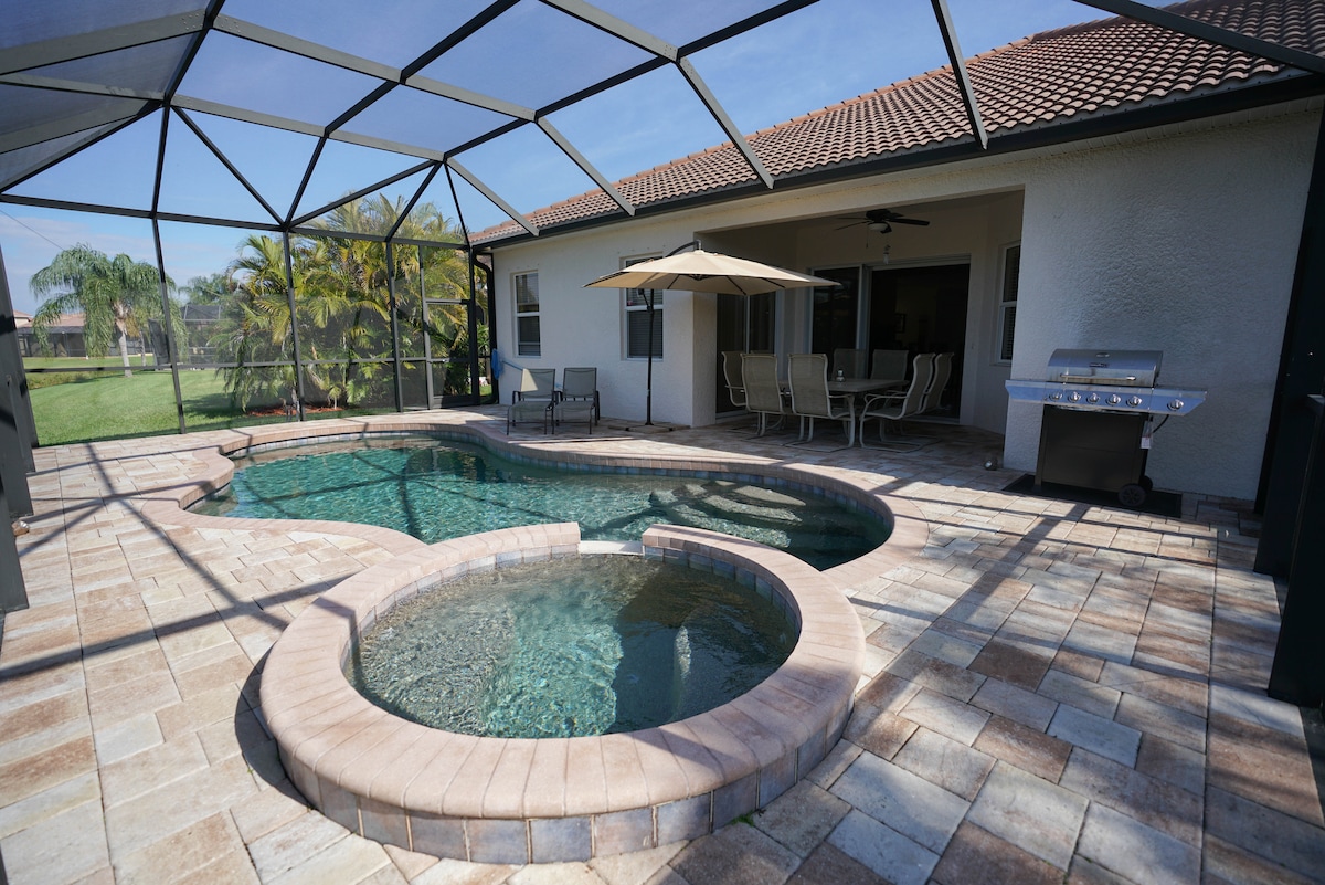 Unwind in the fully screened pool area with a spa, which can be heated for an additional fee of $100 plus 13% tax per week.
