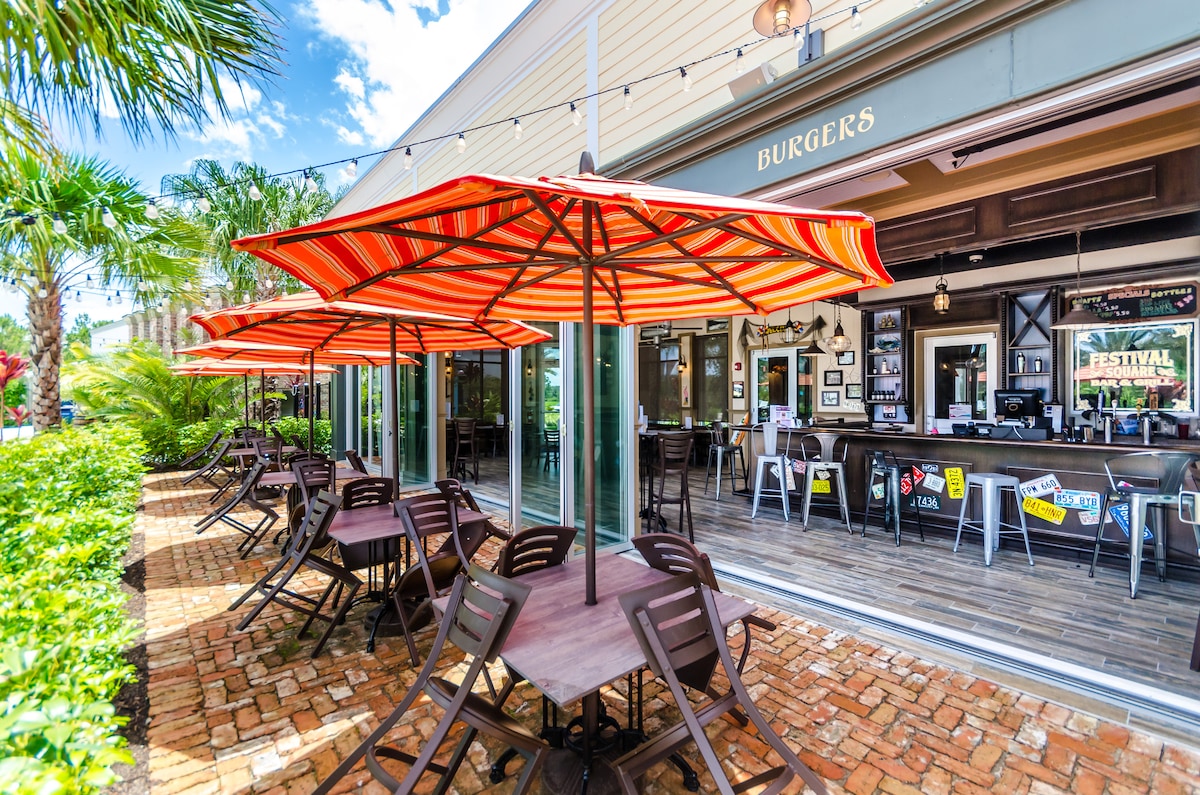 Enjoy the convenience of free Wi-Fi, a private washer and dryer, and a private garage. The outdoor area features a BBQ grill, perfect for creating amazing meals. Festival Resort’s amenities include a heated swimming pool, private cabanas, a kids’ water park, an arcade, a fitness center, putt-putt golf, and a volleyball court, all steps from your door.