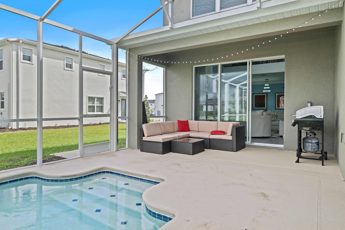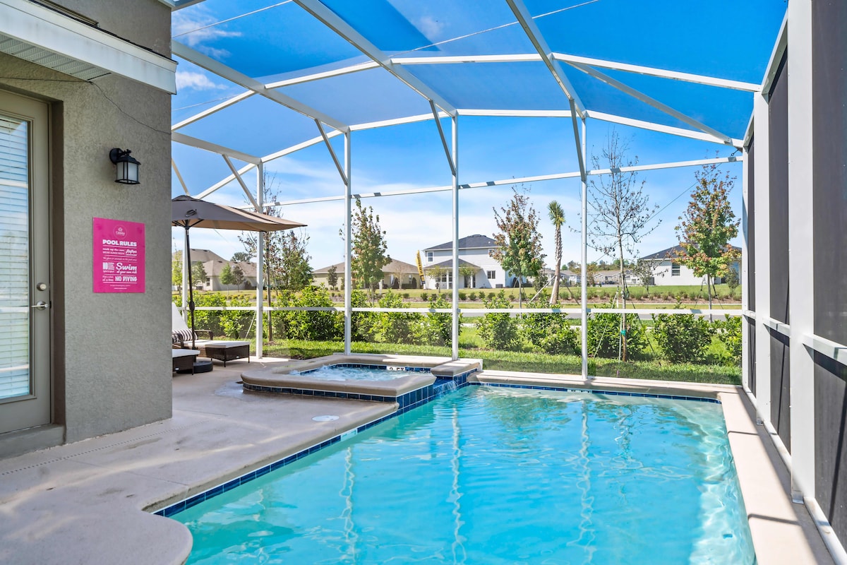 Outdoor living is at its finest here. The private pool and spa offer the ultimate relaxation experience, while the outdoor patio provides a perfect spot for lounging under the Florida sun. Equipped with a BBQ grill and plenty of seating, the outdoor space is ideal for al fresco dining and creating magical moments as you enjoy your vacation.