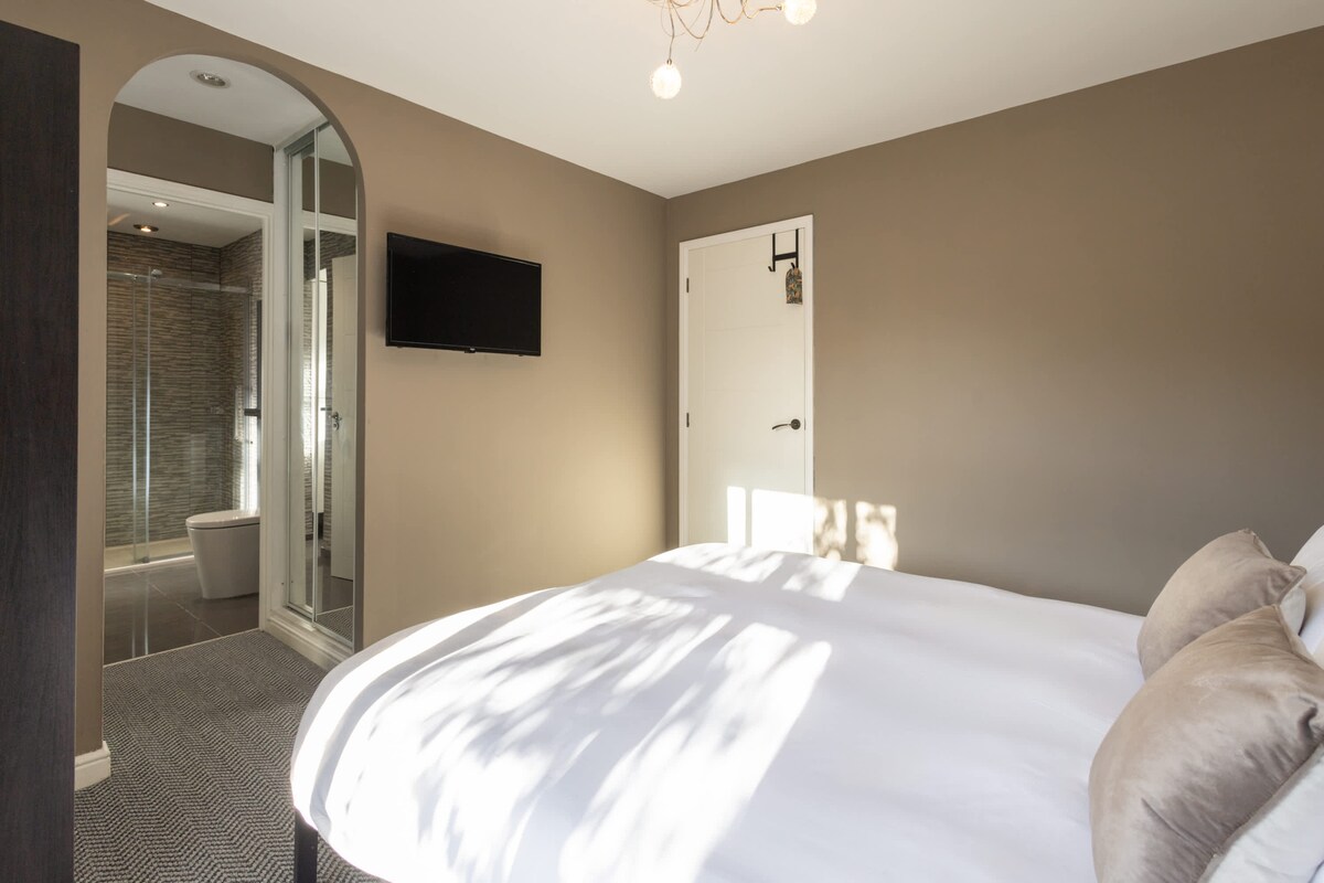 The property is in a great location—peaceful but close to shops, with easy parking. It looked lovely on first glance, but several issues became clear during our stay. In our en-suite, the hot water tap had no pressure and flooded the floor. Some floor tiles were sharp where grout had come out. The shower was extremely hot and unpredictable—there were no clear instructions for use, and at one point the hose actually flew off. This unfortunately led to my dad being scalded, which could have been much worse had someone more vulnerable been using it. The host did kindly offer to send maintenance, but we were too busy to arrange a time. There were also cobwebs on doors and ceilings, a missing threshold strip, and an unkempt garden. Smoke detectors were either out of date or had no batteries, which is a serious concern. With more attention to safety and upkeep, this place could be fantastic. The layout, parking, and location are excellent—it just needs better maintenance and cleanliness.