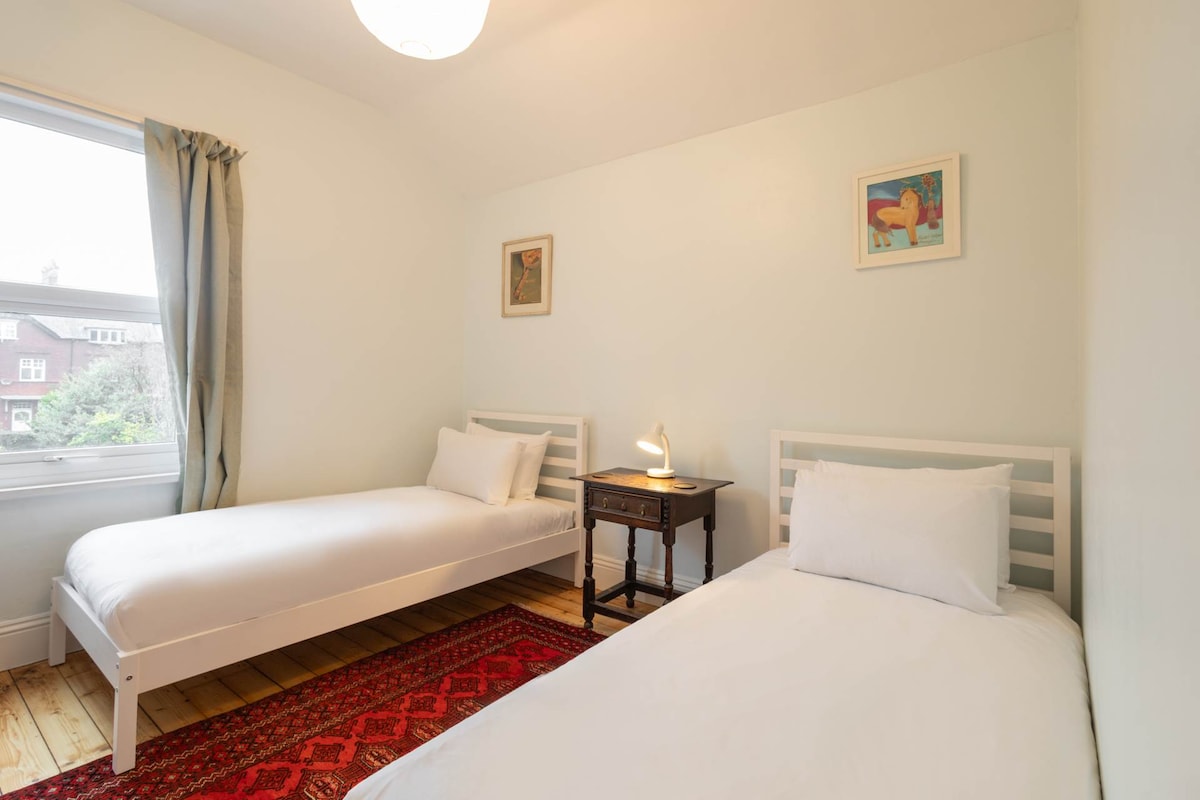 This beautiful, three-bedroom townhouse offers spacious interiors and convenient on-street parking. Perfect for families or groups of friends, the property boasts all the comforts needed for a relaxing stay.The spacious living room is thoughtfully divided into zones for dining, lounging, and reading. The dining table, which seats up to six, is perfect for shared meals. The lounge area includes two comfortable sofas and two chairs, which offer additional seating to unwind with a book and a cup of tea.