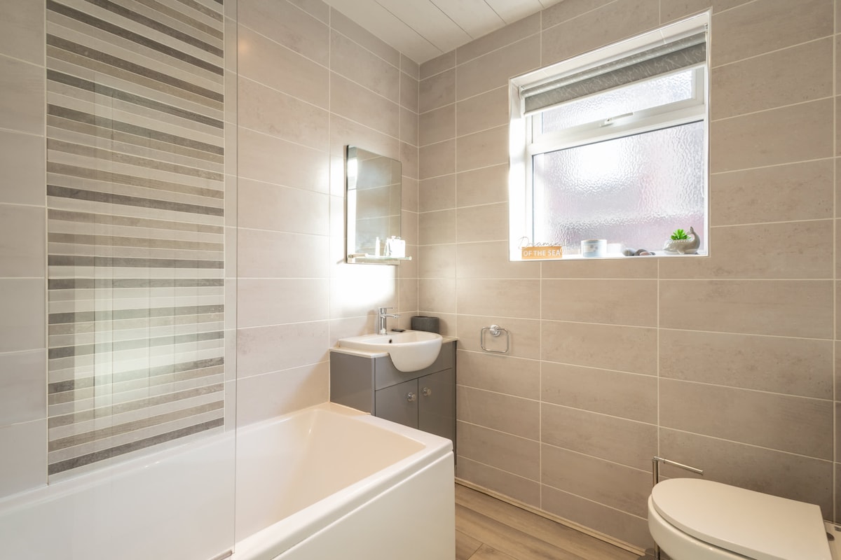 Guests have access to a family bathroom which can be found on the ground floor. The space has a bathtub with overhead shower, wash basin and WC for convenience.