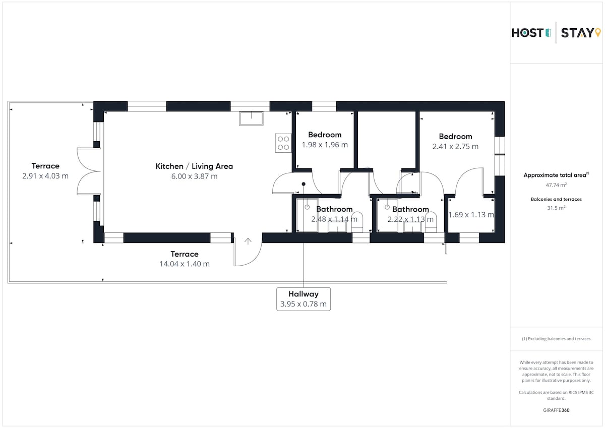 6 guests · 3 bedrooms · 5 beds · 2 bathrooms