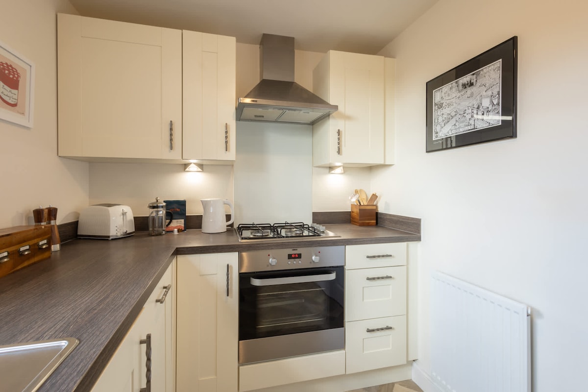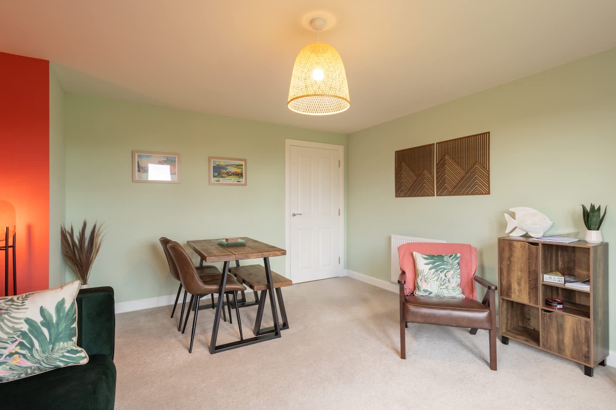 This modern, two-bedroom first floor apartment is perfect for a seaside retreat in Whitby. Nestled close to the famous Cinder Track walkway, it is also just a short stroll to independent shops, restaurants, and lovely pubs and bars in the town centre. Ideal for couples, families and small groups of friends, The Sanctuary offers a comfortable base to explore the North Yorkshire coast. You'll also have private parking for one car - a real bonus in Whitby!
