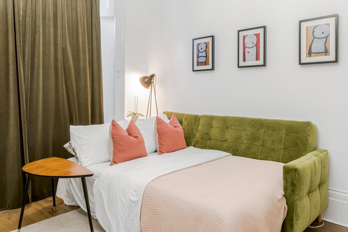 Transport is outside the doorstep. Caledonian Road Overground Station (Zone 1) is a 5-minute walk from the apartment and all frequent bus services are only 30 seconds away. Highbury and Islington National Rail and Underground (Victoria Line) Station is a ten-minute walk from the apartment through the tree-lined picturesque Islington neighbourhood of Barnsbury. St. Pancras Eurostar terminal to Paris and Brussels is less than a 15-minute walk from the apartment and buses connect frequently from close by. Many buses to the West End and other parts of London can be found just as close.