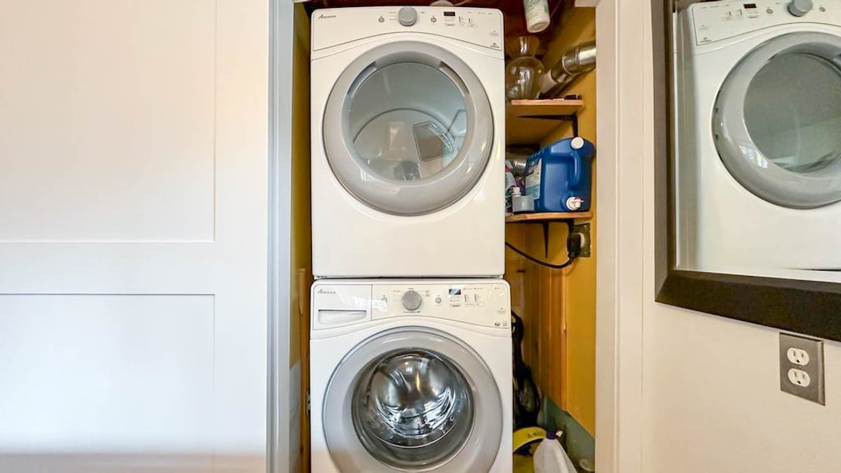 Downstairs offers another living room with a large Smart TV, cozy couches, and a gas fireplace. There's also a workspace if you need to do some work while on vacation.