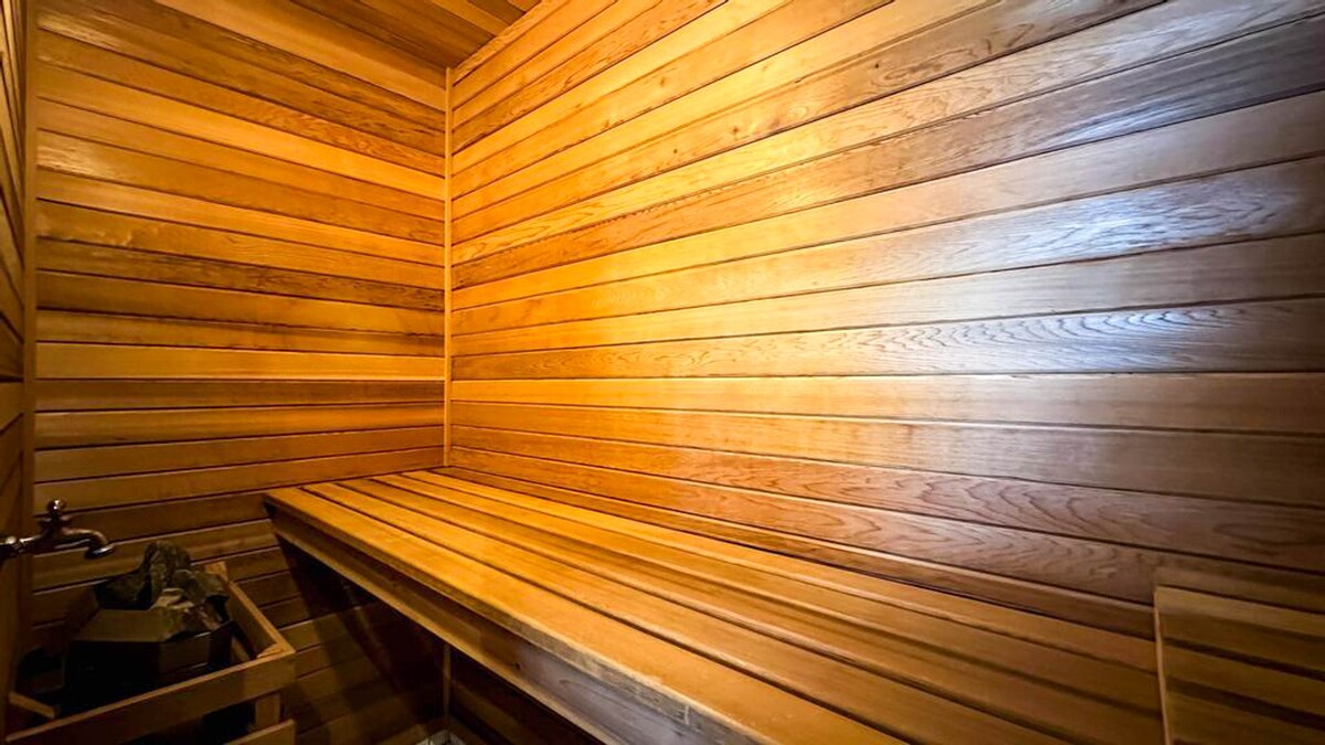 Indulge in a touch of luxury with a private sauna, offering a blissful spa experience right in the comfort of your own cottage-located in the main floor bathroom.