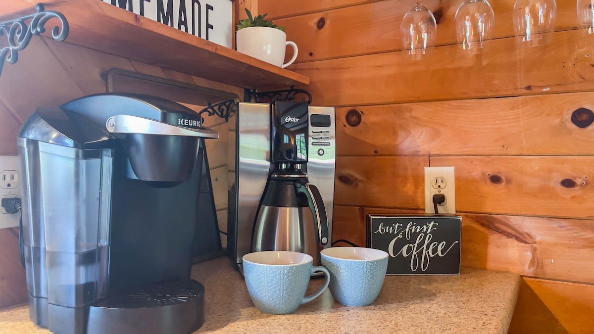 Featuring an eat-in clean kitchen where you can share your favorite meals or play games as a family. The kitchen has everything you need and there is a separate drink area through the pass through. Or share BBQ delights outside complete with bistro lights and a propane heater for chillier nights
