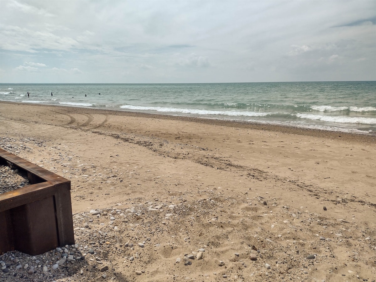 The beach here is fabulous!!! The access to the Lake is 2 doors North.(Approx 60 stairs) Looks like someone's driveway but it's actually to the left. The lakebed can be sandy or stoney depending on what the lake gives you that day. But it sure is fun to try to find the ever changing sandbars. Generally you will find sand 3ft out. It's fun to go stone collecting - Lake Huron is a geologists paradise! Just bring some water shoes. The nice thing is, it's not weedy or slimy at all.