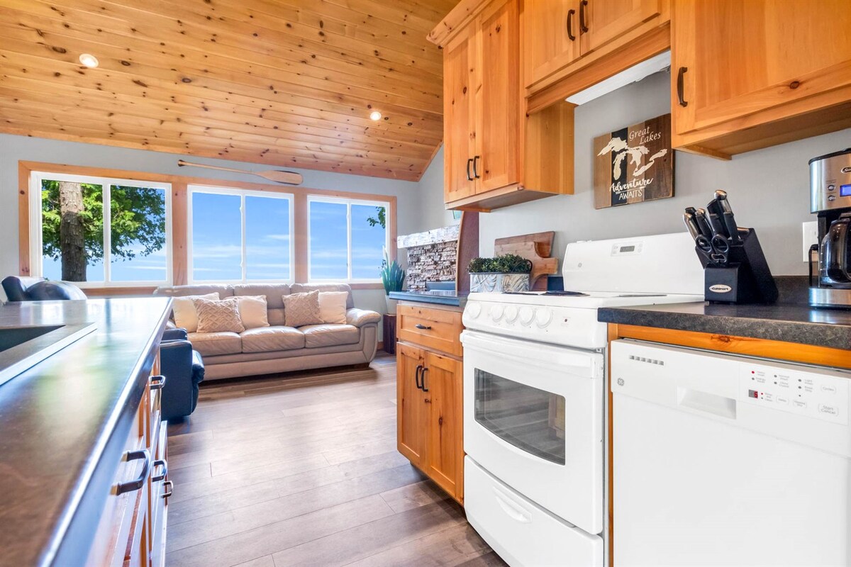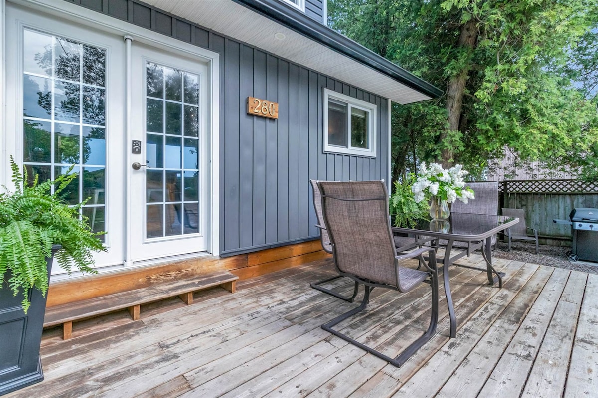 We loved our stay at Pier 280 and would stay again. Although the beach was all limestone, it was shallow enough that you could feel comfortable with younger children. The fire pit was wonderful in the evenings and there were two tables to eat outside. (This was good because there is only bar stool seating at the island inside.) The beds and sofa are comfortable. The Internet isn’t always reliable (not Jennifer’s fault) and the BBQ burners need replacing - I would check that this has been done before booking if you want to grill. The cottage gets very hot. To get airflow, you need to leave the front door open, which invites insects. Fans in the bedrooms would be helpful. Finally, I was unclear from the description that Jennifer owns such a large number of properties. If you prefer to avoid large businesses, you should be aware of this.