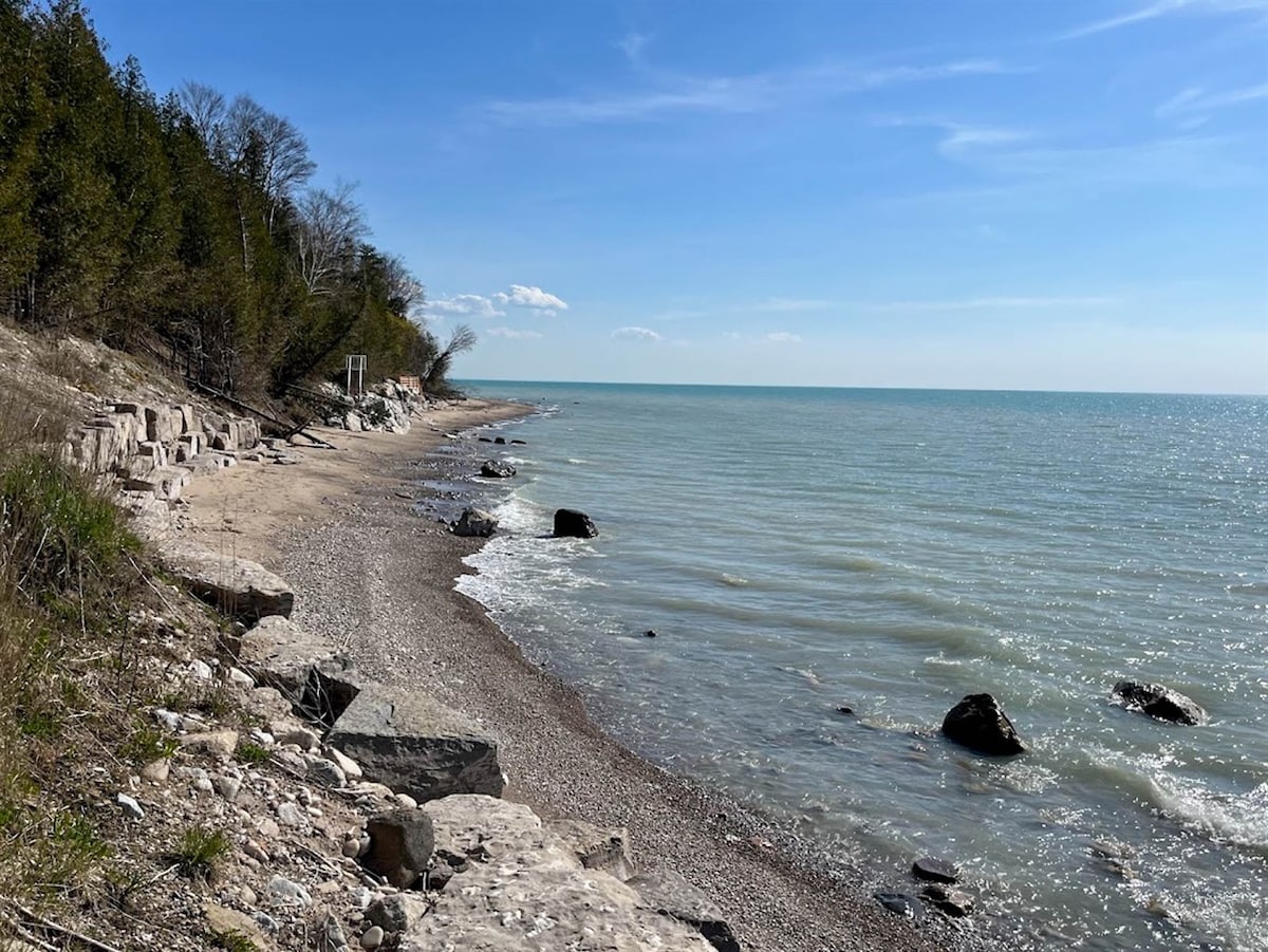 Public Lake access is 5 min walk away in Paul Bunyan campground. The lakebed can be sandy or stoney depending on what the lake gives you that day. But it sure is fun to try to find the ever changing sandbars. Generally you will find sand 3ft out. It's fun to go stone collecting - Lake Huron is a geologists paradise! Just bring some water shoes. The nice thing is, it's not weedy or slimy at all.