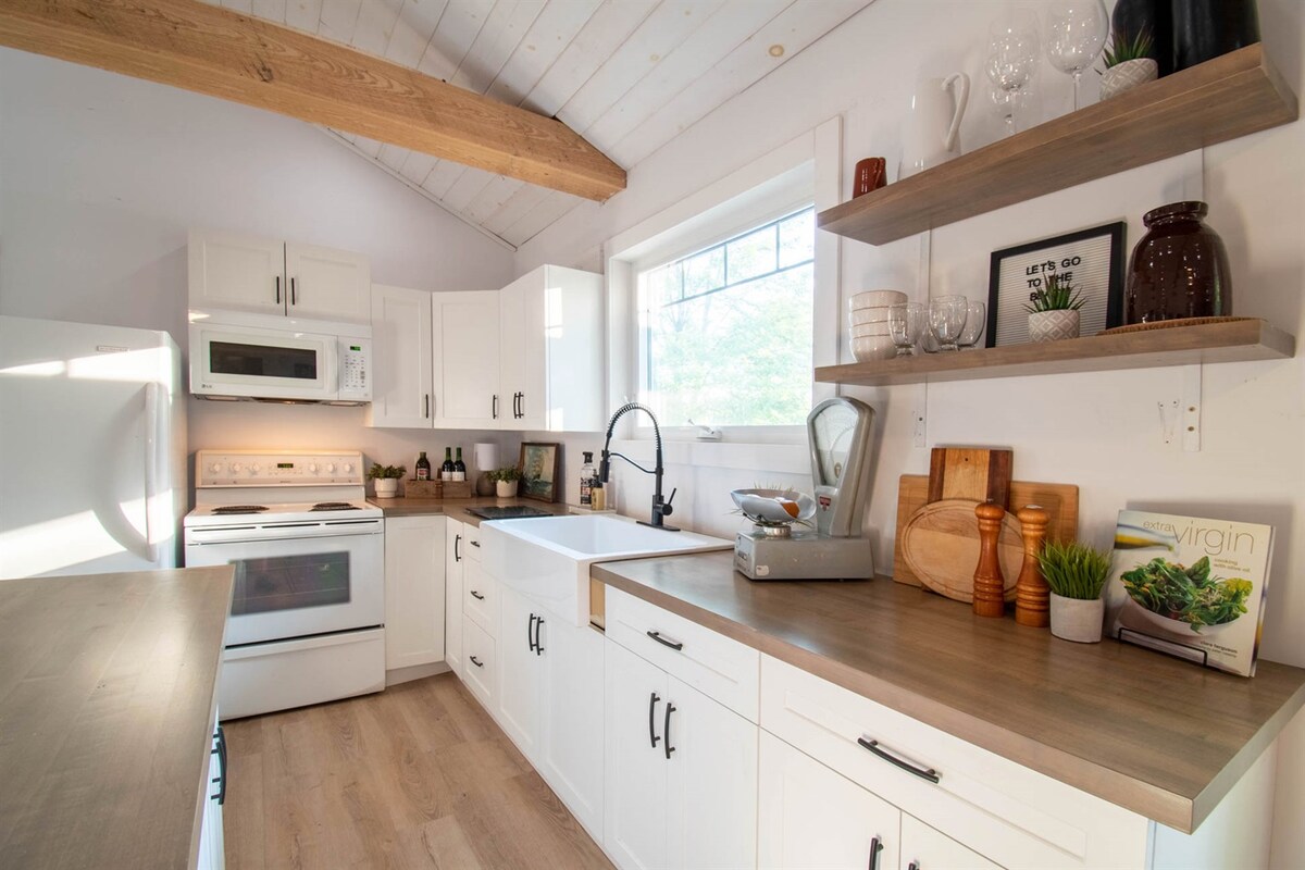 With 3 bedrooms there’s ample room for families and friends. Your cottage comfortably sleeps 6 guests. There’s also a bathtub for your soaking pleasure.