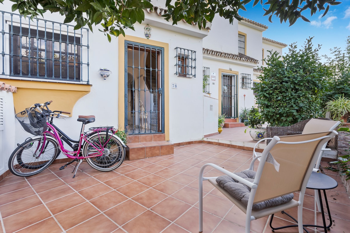 Welcome to this charming 2 bedroom, 2 bathroom townhouse, perfect for those seeking comfort, convenience, and a touch of luxury. With terraces to the front and back, you will have the perfect spots to soak up the sun, enjoy your morning coffee, or relax with family and friends in the evening. Surrounded by lush green areas and with access to beautiful communal pools, this home offers a tranquil escape.