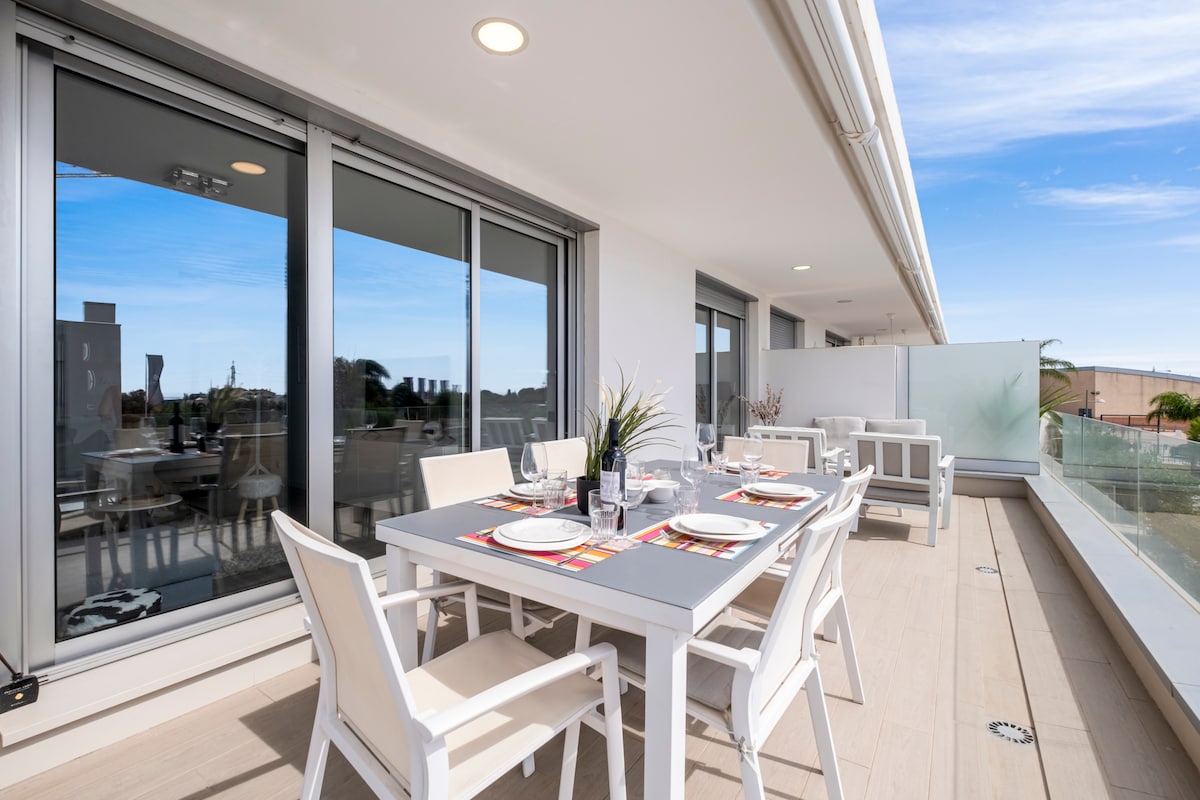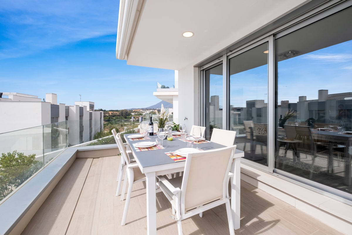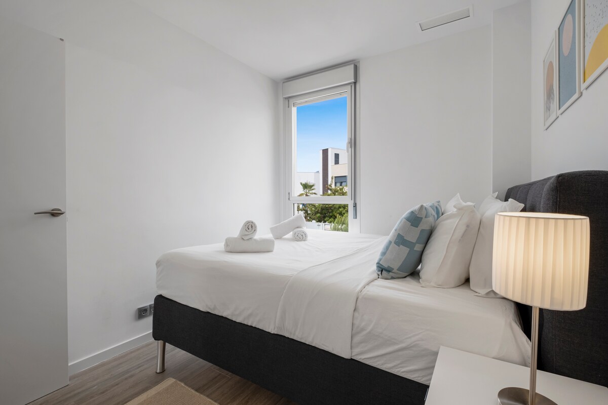 Welcome to our modern 3-bedroom apartment in Cancelada, Estepona, perfect for families or groups of up to 6 guests. This spacious property offers a bright open-plan living area, a fully equipped kitchen, and three comfortable bedrooms, ensuring a relaxing stay.