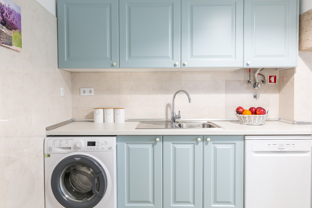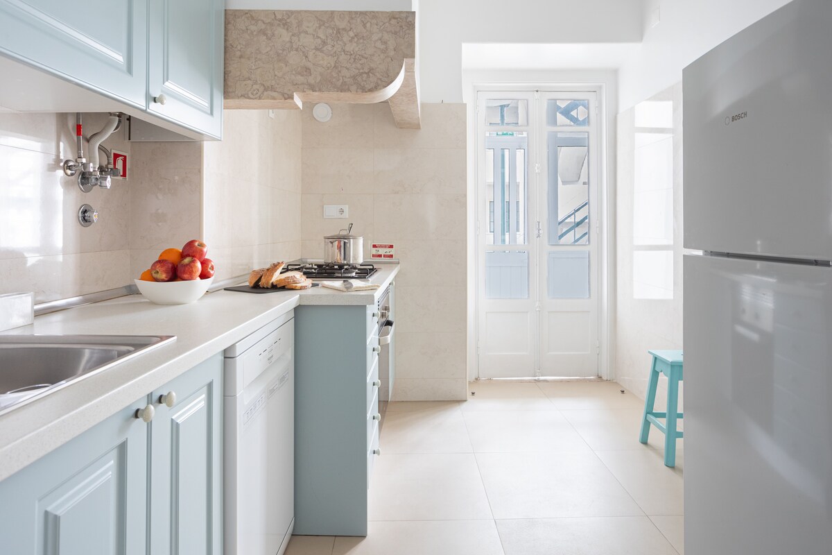 The apartment has a full equipped kitchen for 9, with fridge, freezer, gas oven, microwave, coffee machine, toaster, juice squeezer, kettle, dish washing and washing machine. As a treat coffee and tea are available, enjoy!